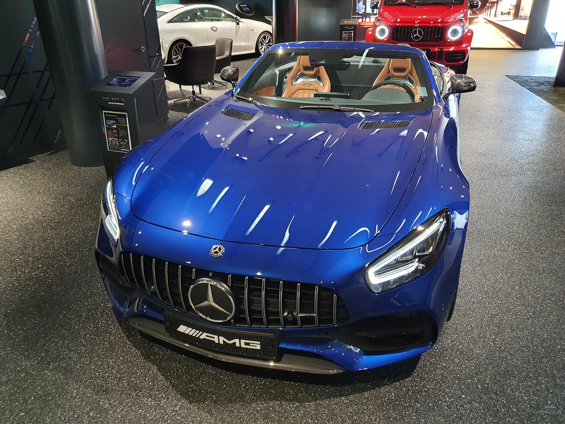 AMG서울 오픈을 기념해 주문 제작된 GT C 로드스터 AMG 서울 에디션은 메탈릭 블루 컬러가 적용됐으며, 무광 카본 트림과 AMG 전용 멀티스포크 휠, AMG 스포츠 시트 등이 적용됐다.
