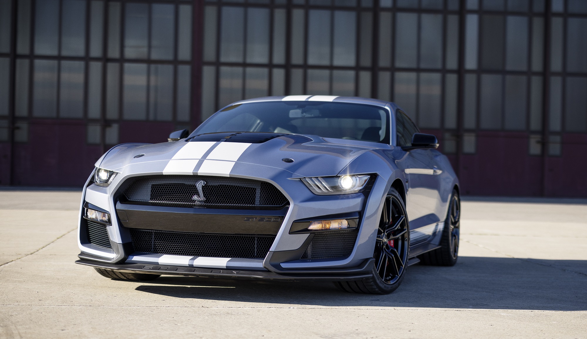 오리지널 쉘비를 상징하는 전면부 레이싱 스트라이프 데칼과 쉘비 고유의 코브라 엠블럼, 공격적으로 연출된 바디킷 등은 일반 머스탱과 크게 차별화된 뚜렷한 존재감을 드러낸다.