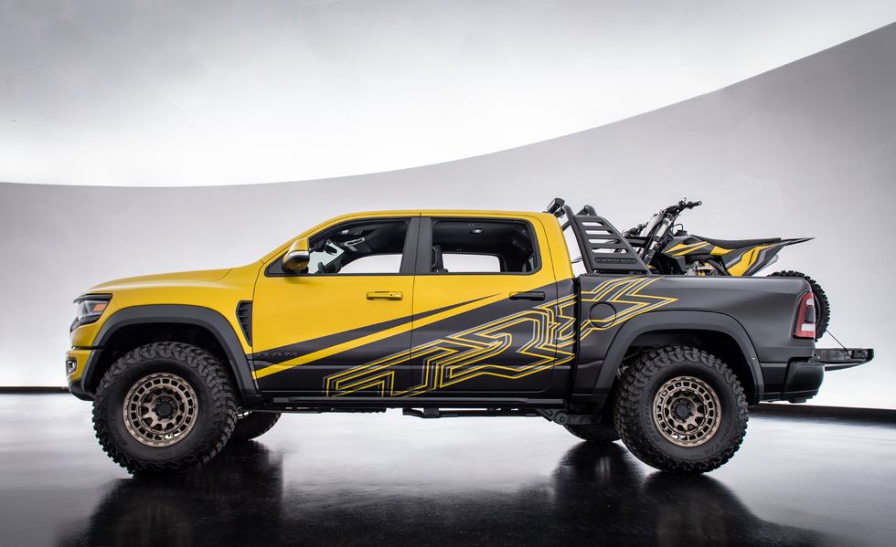 해당 차량은 702마력의 강력 픽업 '램 1500 TRX'를 기반으로 하며, 세계에서 가장 빠르고 강력한 픽업트럭으로 정해진 시간 내에 오프로드 트레일에 도달할 수 있도록 지원한다.