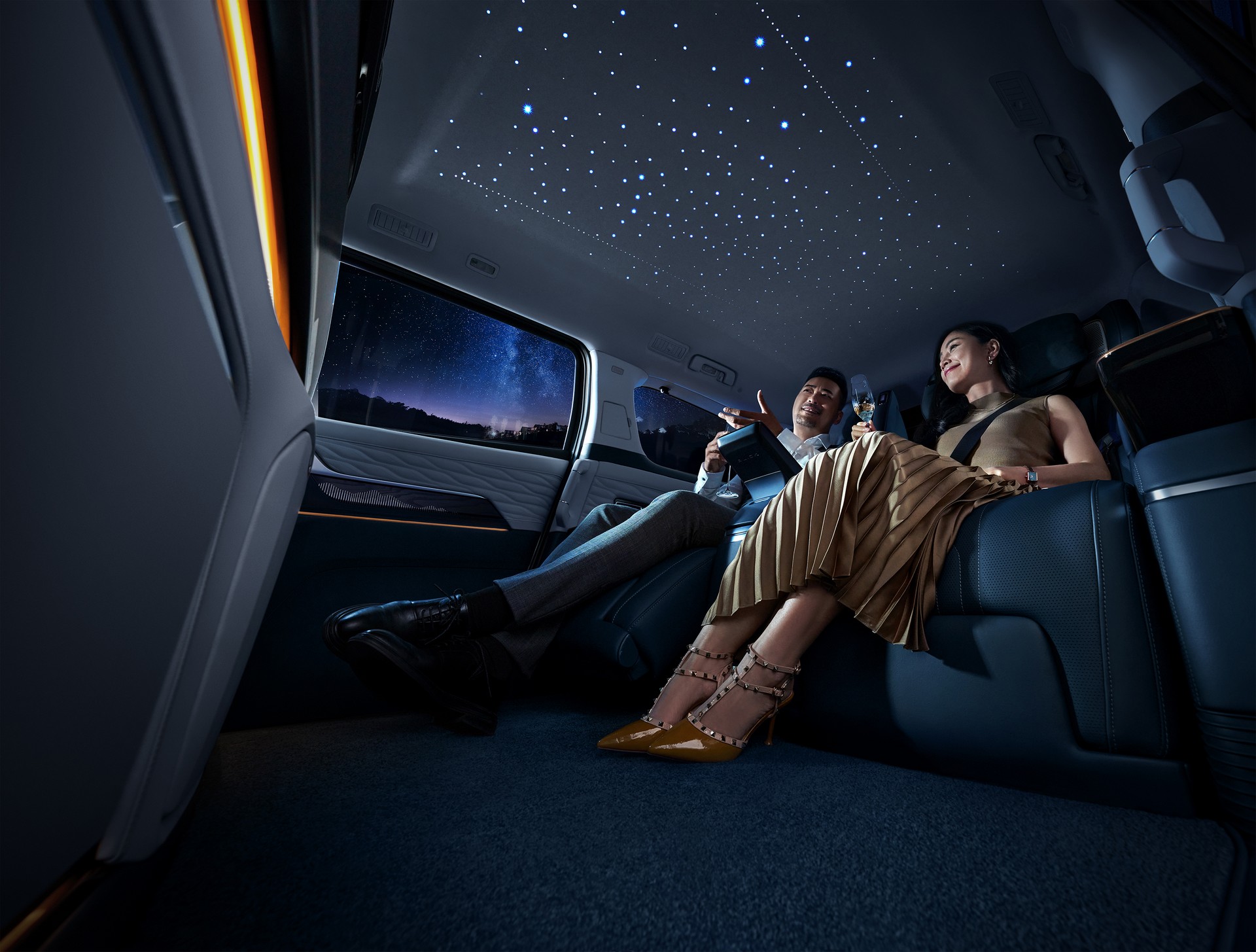 이는 롤스로이스의 스타 헤드라이너를 연상시키며, 음성 명령어나 컨트롤을 사용해 로맨스, 명상 등의 조명 모드를 선택할 수 있다. 덕분에 탑승자는 밤하늘의 별들을 수놓은 듯한 은하수 같은 천장 분위기를 만끽할 수 있다.