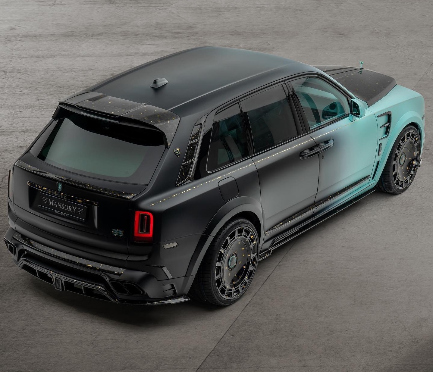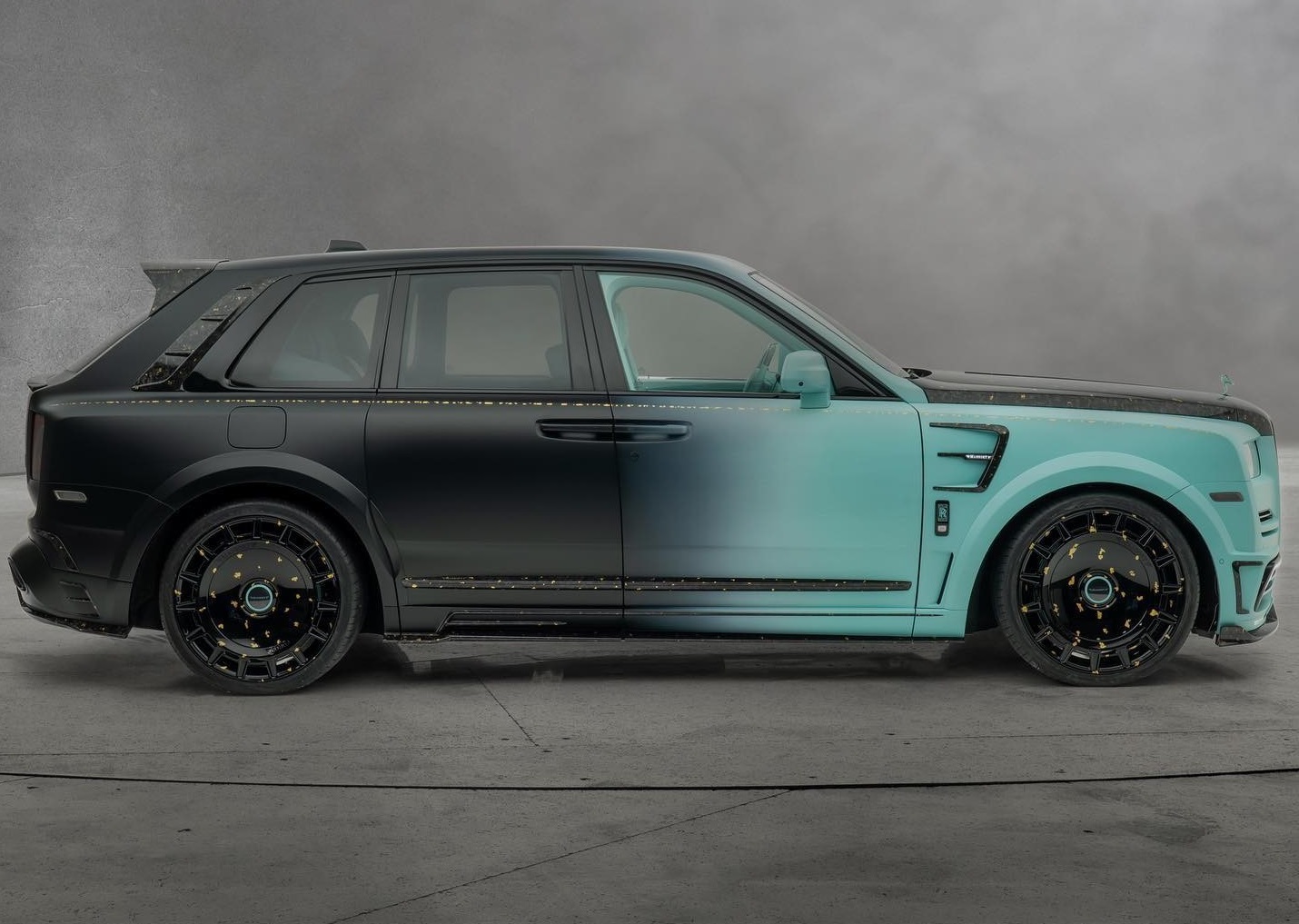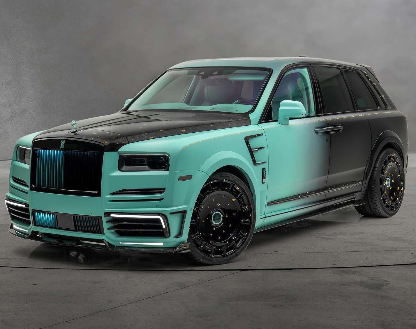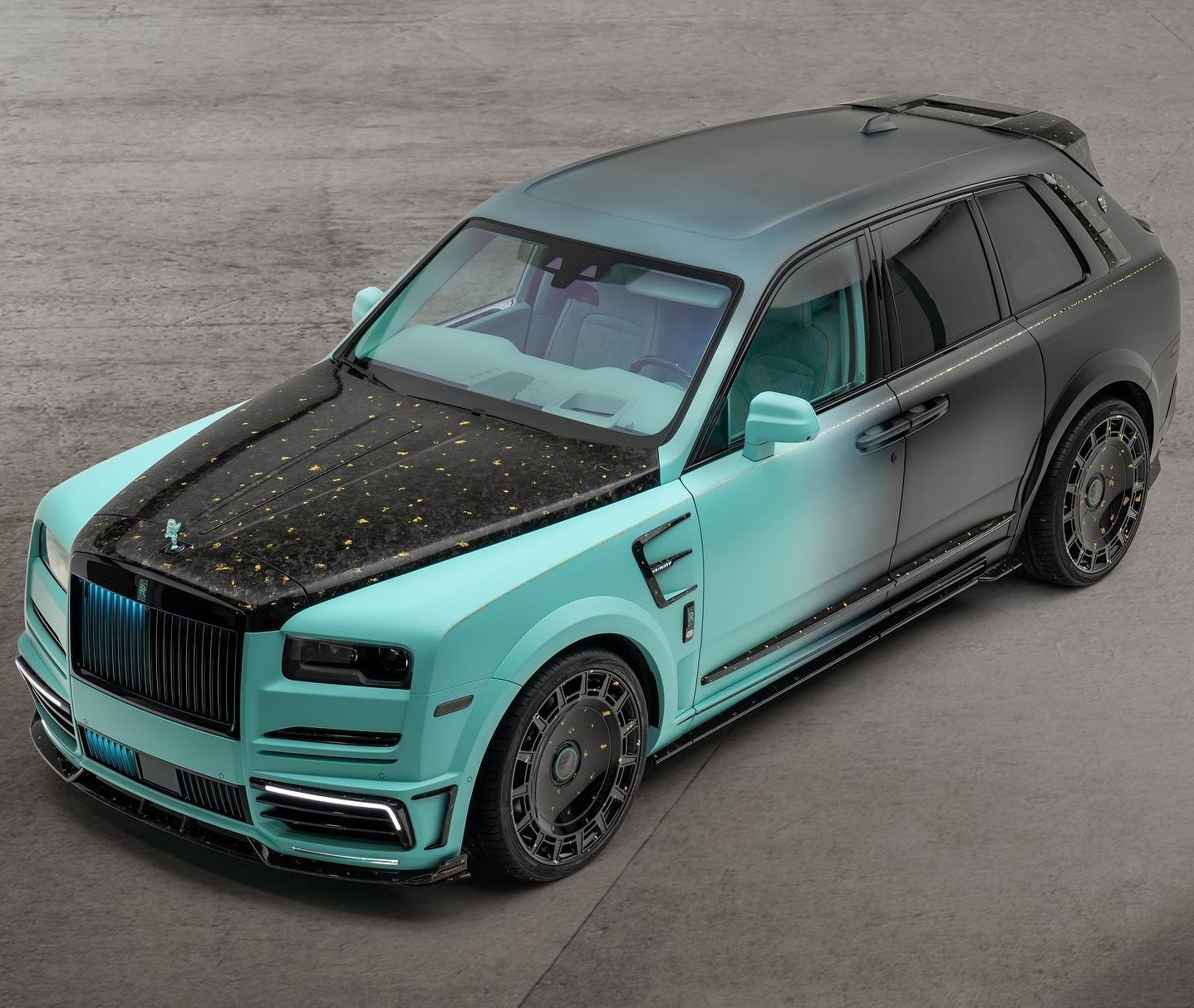 터콰이즈와 블랙의 컬러 비율은 7:3 정도이며, 차량의 앞쪽은 청록빛의 터콰이즈, 뒤쪽은 블랙 컬러가 입혀졌다. 또한 보닛과 휠 등 차량 곳곳에 24K 골드 악센트를 적용해 럭셔리 분위기를 극대화했다.