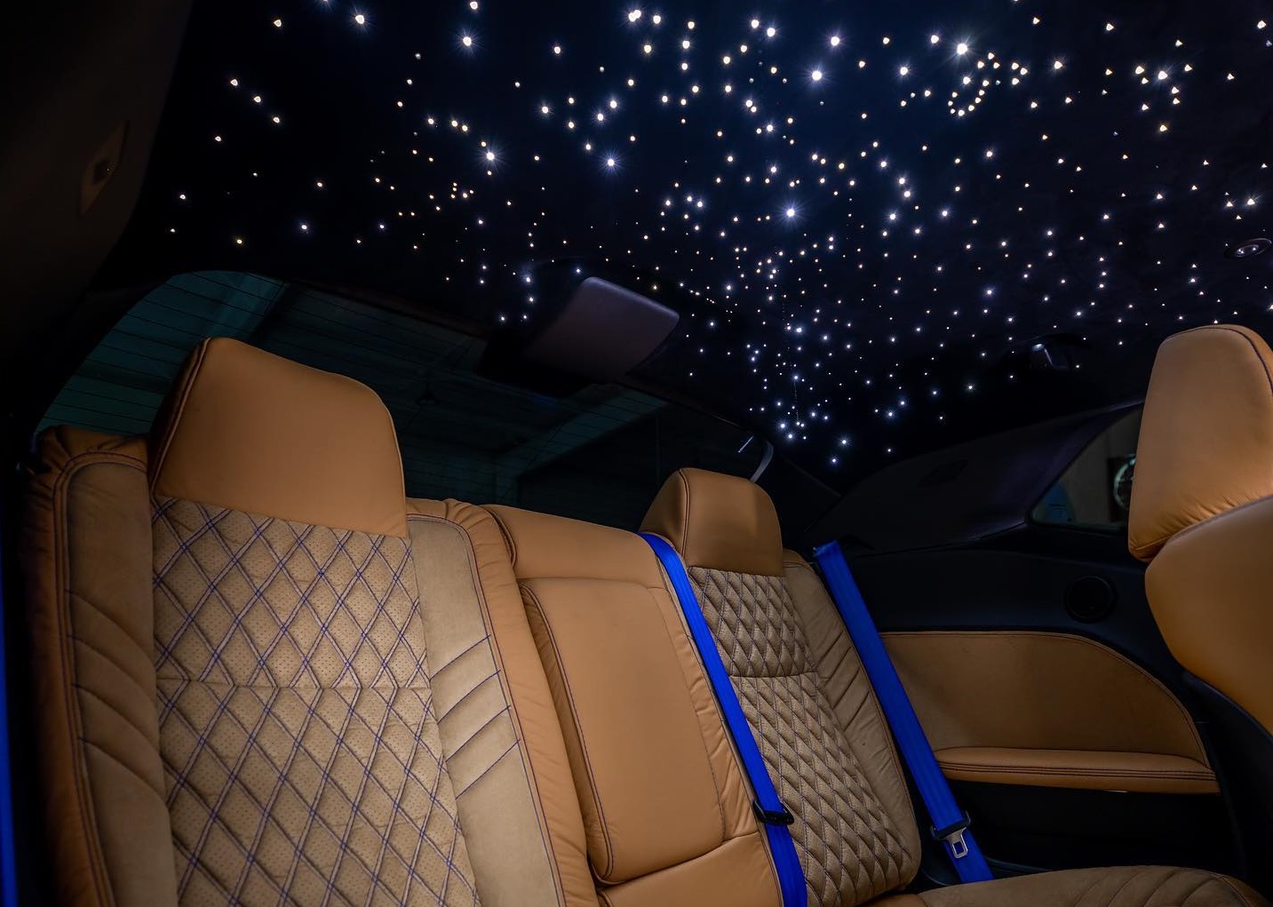 천장의 헤드라이너는 밝게 빛나는 LED 무드등이 적용돼 롤스로이스의 은하수 무드를 연상시킨다.