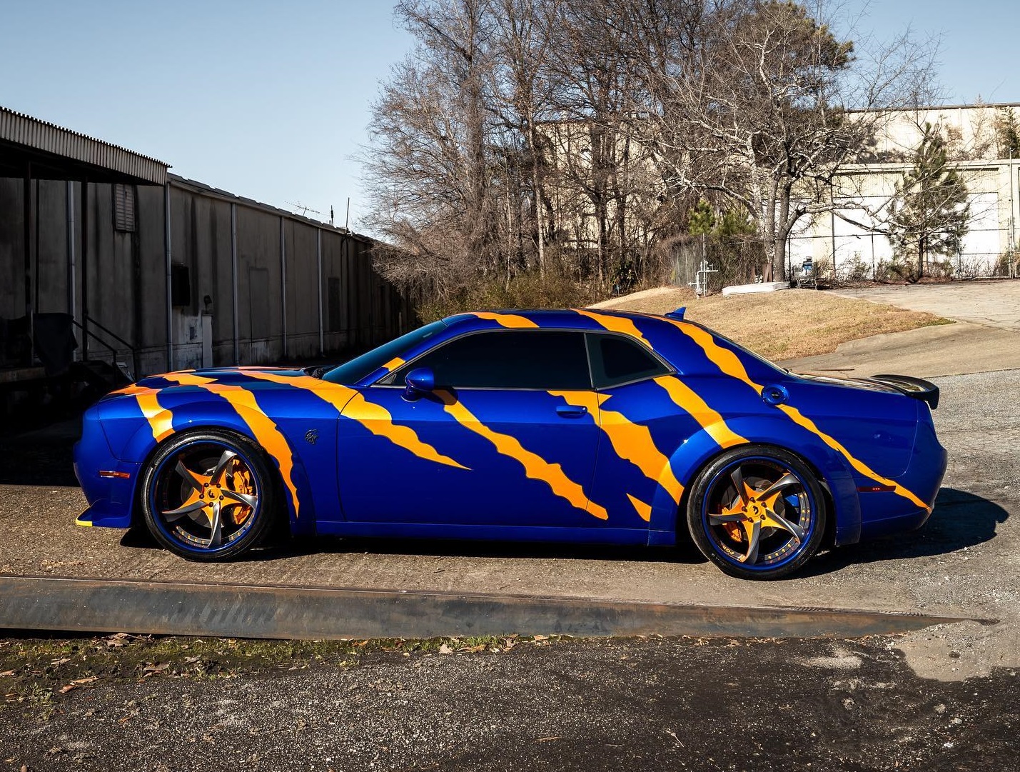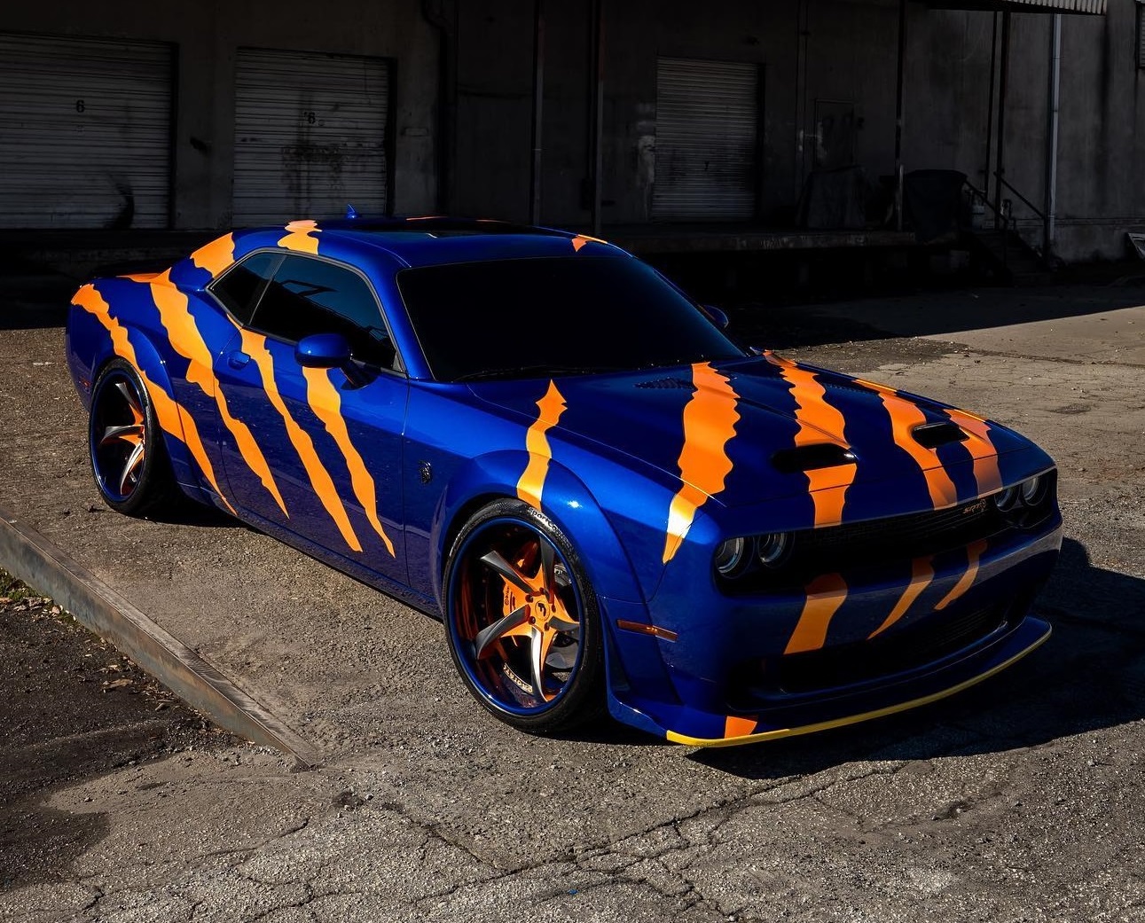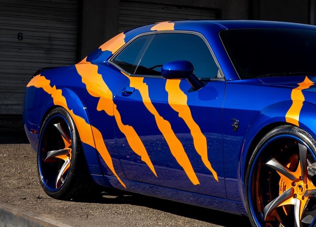 닷지 챌린저 SRT 헬캣 레드아이를 기반으로 한 해당 튜닝카는 다크 블루 베이스 외장 컬러에 호랑이 발톱으로 할퀸 듯한 형상의 오렌지 스트라이프로 외관의 포인트를 줘 멀리서도 시선을 사로잡는다.