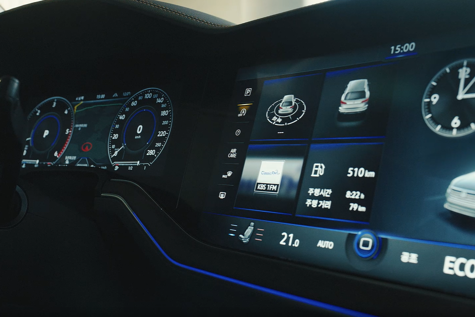 외관은 플래그십 특유의 카리스마를 담은 압도적인 디자인이 눈길을 끈다. 먼저 전면부는 금속을 가공한 듯한 크롬 그릴이 견고하면서도 당당한 인상을 강조하며, 프론트 그릴과 연결된 LED 매트릭스 헤드라이트를 통해 폭스바겐만의 시그니처 프론트 디자인을 완성했다.