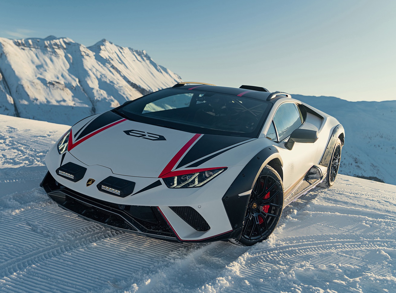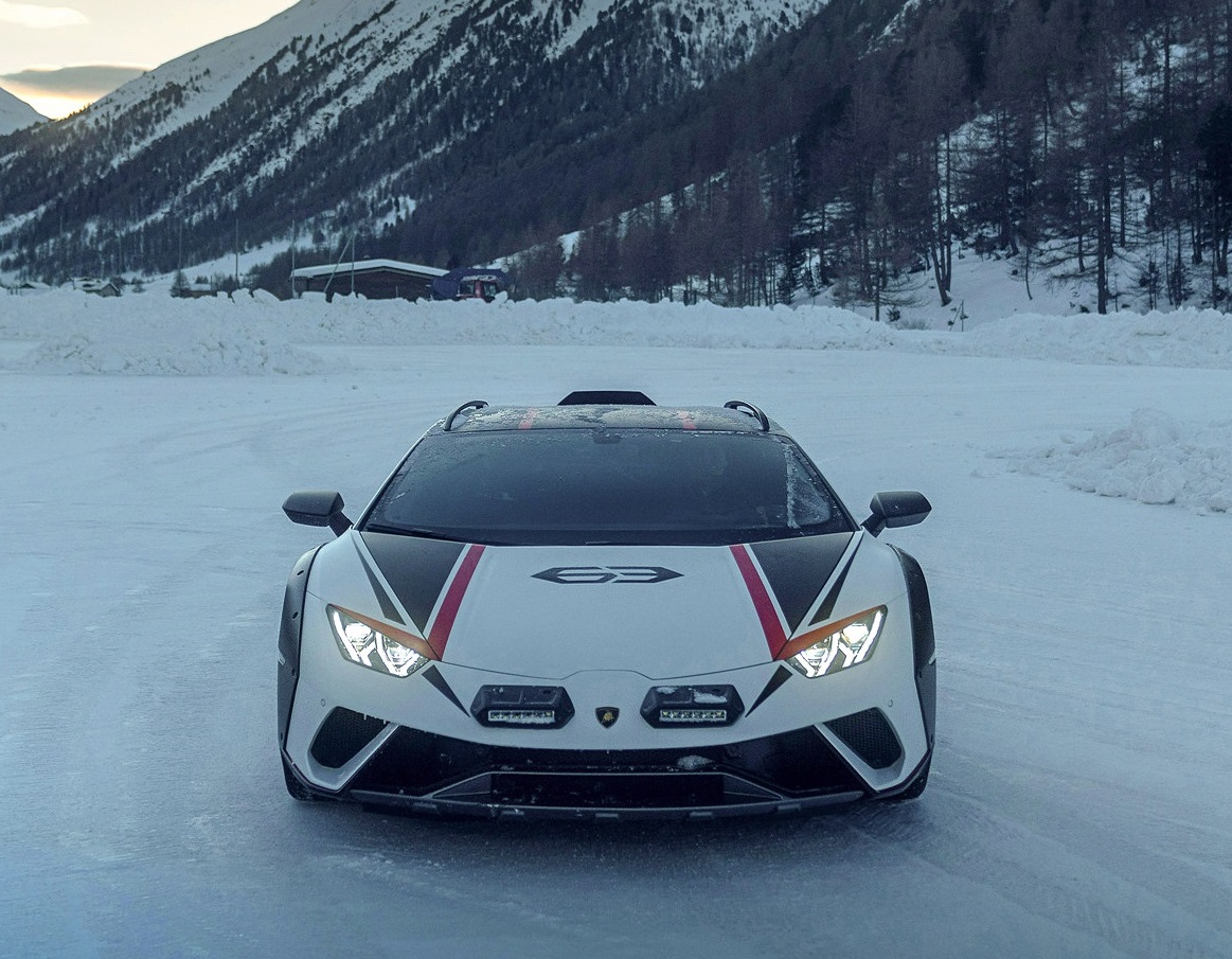 이탈리아 슈퍼카 브랜드 람보르기니는 이탈리아 리비뇨의 스키 리조트에서 '우라칸 스테라토'의 주행을 선보였다.