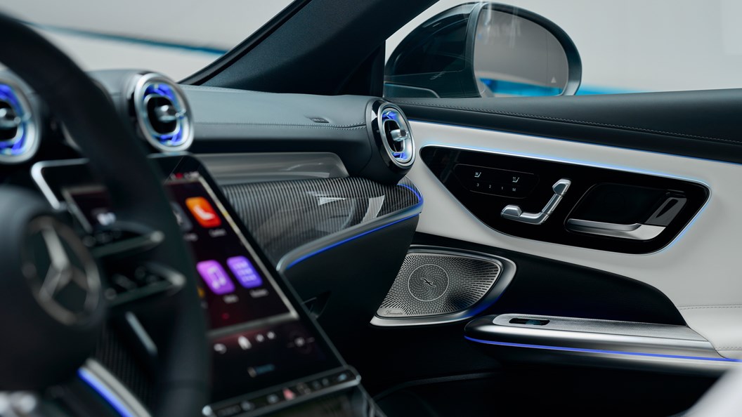 더 뉴 CLE에는 해당 모델만을 위해 개발된 새로운 헤드레스트 일체형 아방가르드 스포츠 시트 디자인이 적용됐다. 또 부메스터 3D 서라운드 사운드 시스템을 탑재한 경우 헤드레스트 위치에 2개의 스피커가 달려있어 돌비 애트모스 사운드 시스템과 함께 더욱 몰입감 있는 음향 경험을 제공한다.
