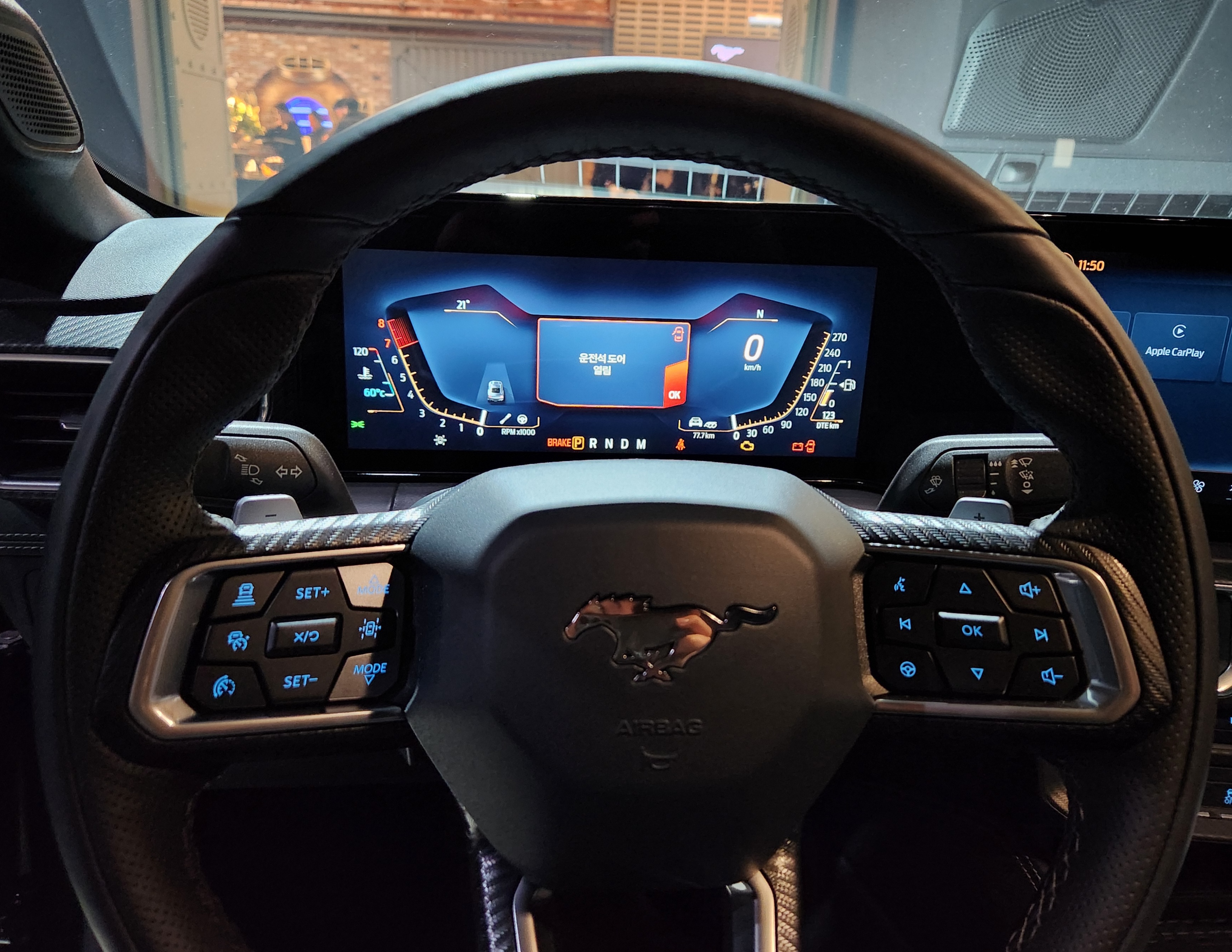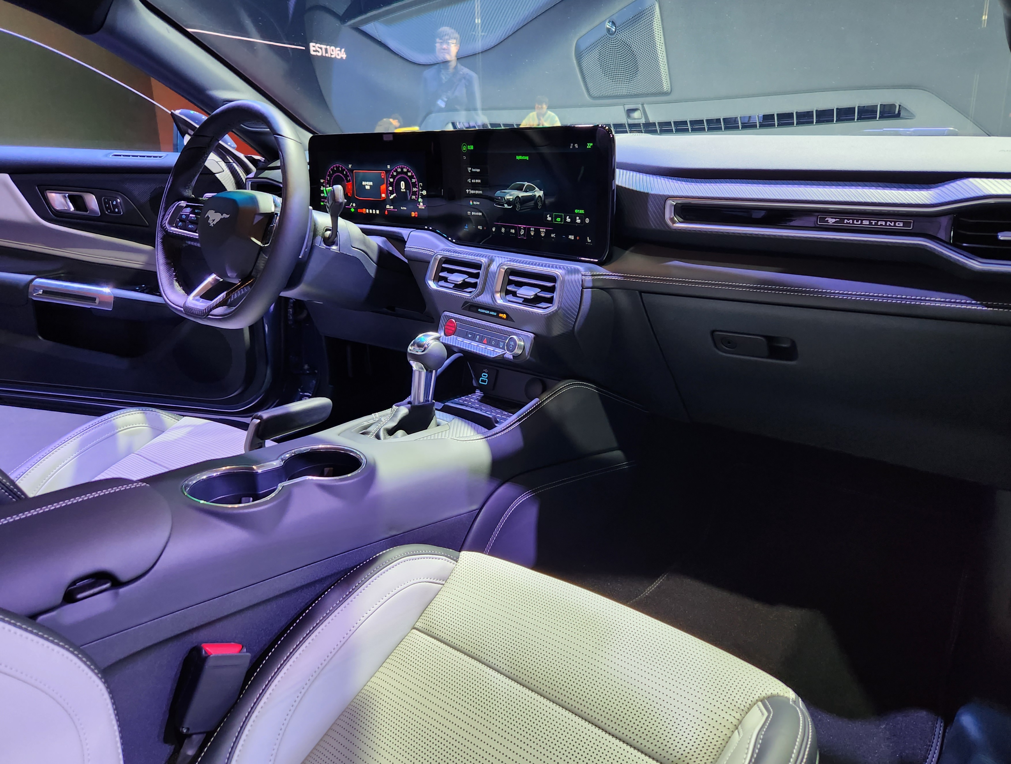 운전석 쪽에 위치한 12.4인치 디스플레이는 최신 비디오 게임에서 사용되는 언리얼 엔진 3D 제작 툴을 기반으로 한 다양한 애니메이션 이미지들이 드라이브 모드에 따라 달리 구현된다. 이 중 오랜 기간 큰 사랑을 받았던 3세대 머스탱 계기판의 아날로그 감성을 느낄 수는 '폭스바디' 테마가 특히 인기를 끌고 있다. 13.2인치 센터스택 디스플레이에서도 간단한 터치만으로 미디어 및 공조 시스템 등을 모두 조절 가능케함으로써 사용 편의성을 높였다.