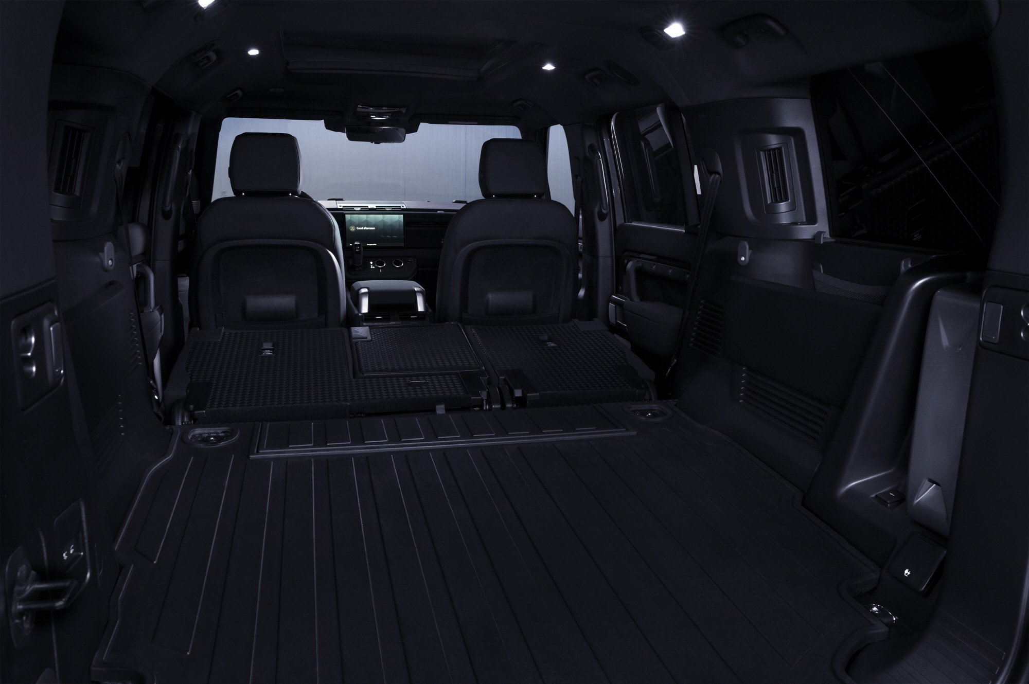 실내 공간은 럭셔리함과 실용성에 초점을 뒀다. 시트는 에보니 컬러를 적용하고, 아웃도어 라이프스타일에 적합한 뛰어난 내구성을 자랑하는 리지스트 재질로 마감했다. 이와 더불어 에보니 컬러의 헤드라이닝과 새틴 블랙 파우더 코트로 마감한 디펜더의 시그니처 크로스 카 빔을 더해 전체적인 통일감을 선사한다. 또한 아웃도어나 레저 활동을 즐기는 라이프스타일에 최적화된 실용적인 인테리어 요소를 곳곳에 적용했다. 적재 공간에 적용된 튼튼한 고무 바닥 매트는 자전거나 여행가방, 캠핑 장비 등 부피가 크고 무거운 레저 활동용품을 적재할 때 차체를 보호할 수 있도록 접을 수 있다. 또한, 추가 적재 공간이 있어 작은 물건을 눈에 띄지 않게 안전하게 보관할 수 있으며, 래싱 포인트와 카고 네트 등이 적용돼 아웃도어 장비나 화물을 안전하게 운반할 수 있다.