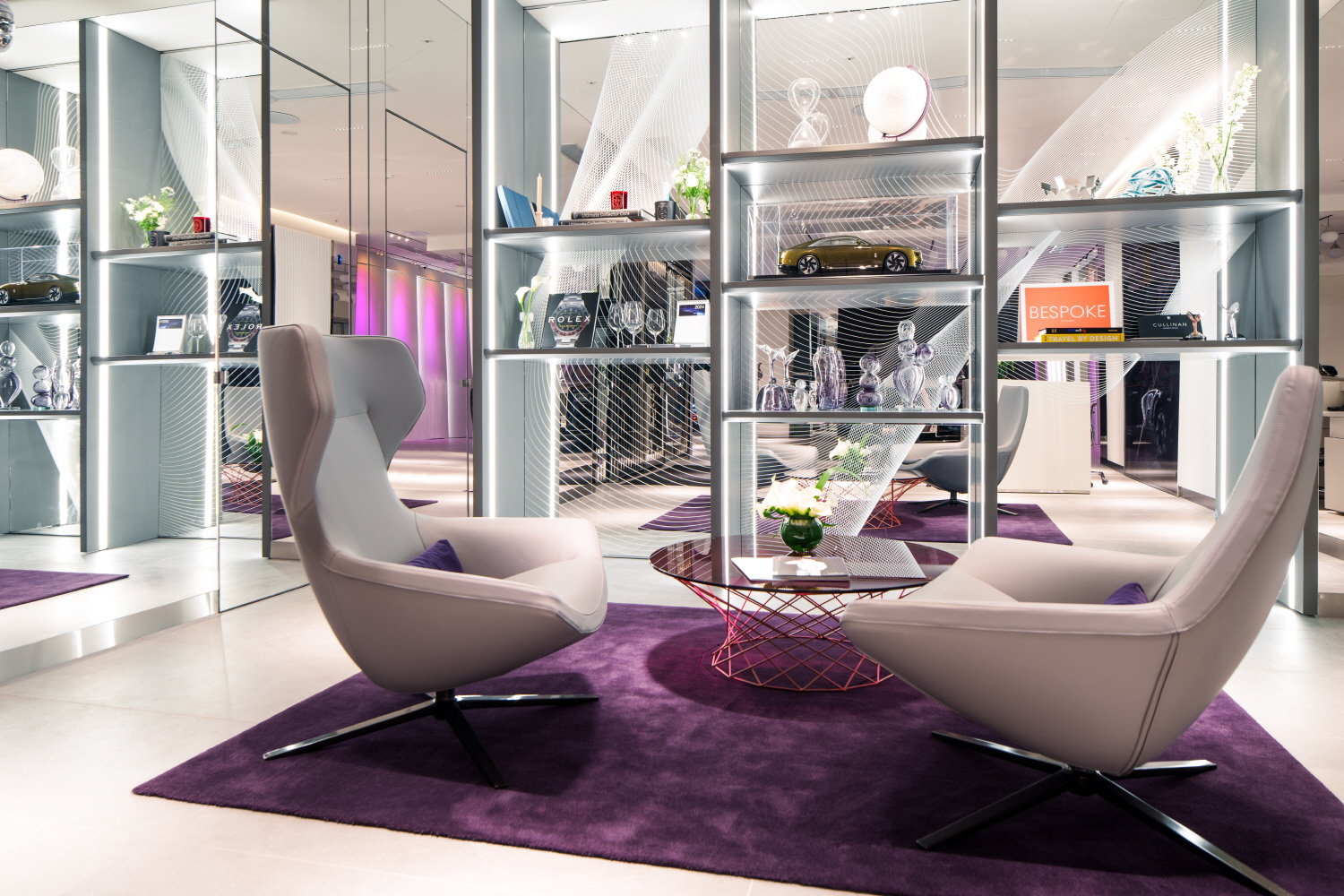 전시장 리뉴얼은 자동차 제조사를 넘어 글로벌 럭셔리 하우스로 거듭나고자 하는 브랜드의 방향성이 반영되어, 롤스로이스가 제공하는 무한한 창의성을 고객들이 온전히 느낄 수 있는 공간으로 재탄생했다. 모든 설계는 럭셔리 트렌드의 중심부에 위치한 입지 환경 및 롤스로이스 고객의 까다로운 취향 등을 고려해 세심하게 진행됐으며 전시장 곳곳에는 롤스로이스 최신 VID가 적용됐다.