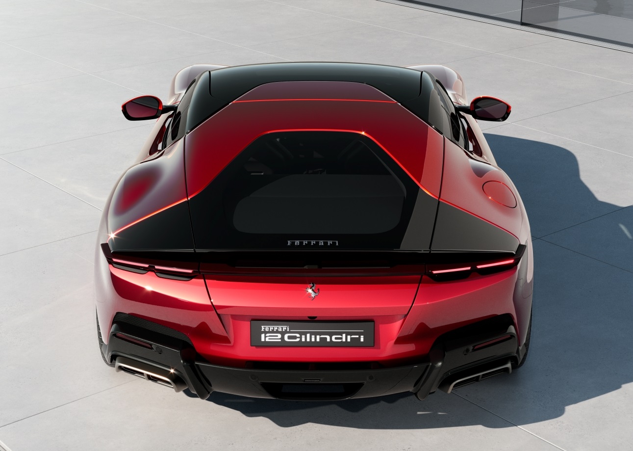 후면부에도 유사한 접근 방식이 적용됐다. 다시 한번 형식적인 엄격함이 적용됐고 볼륨을 줄여 형태를 만들어냈다. 차량 전면부와 일관성을 보이는 테일라이트는 오목한 후면부 전체를 가로지르는 블레이드 형태로 되어있다. 이런 디자인은 12실린드리의 진정한 시그니처 테마라고 볼 수 있으며, 페라리 스타일링 센터의 디자이너들이 기술적, 기능적 요구사항을 얼마나 영리하게 융합했는지 잘 보여주고 있다.