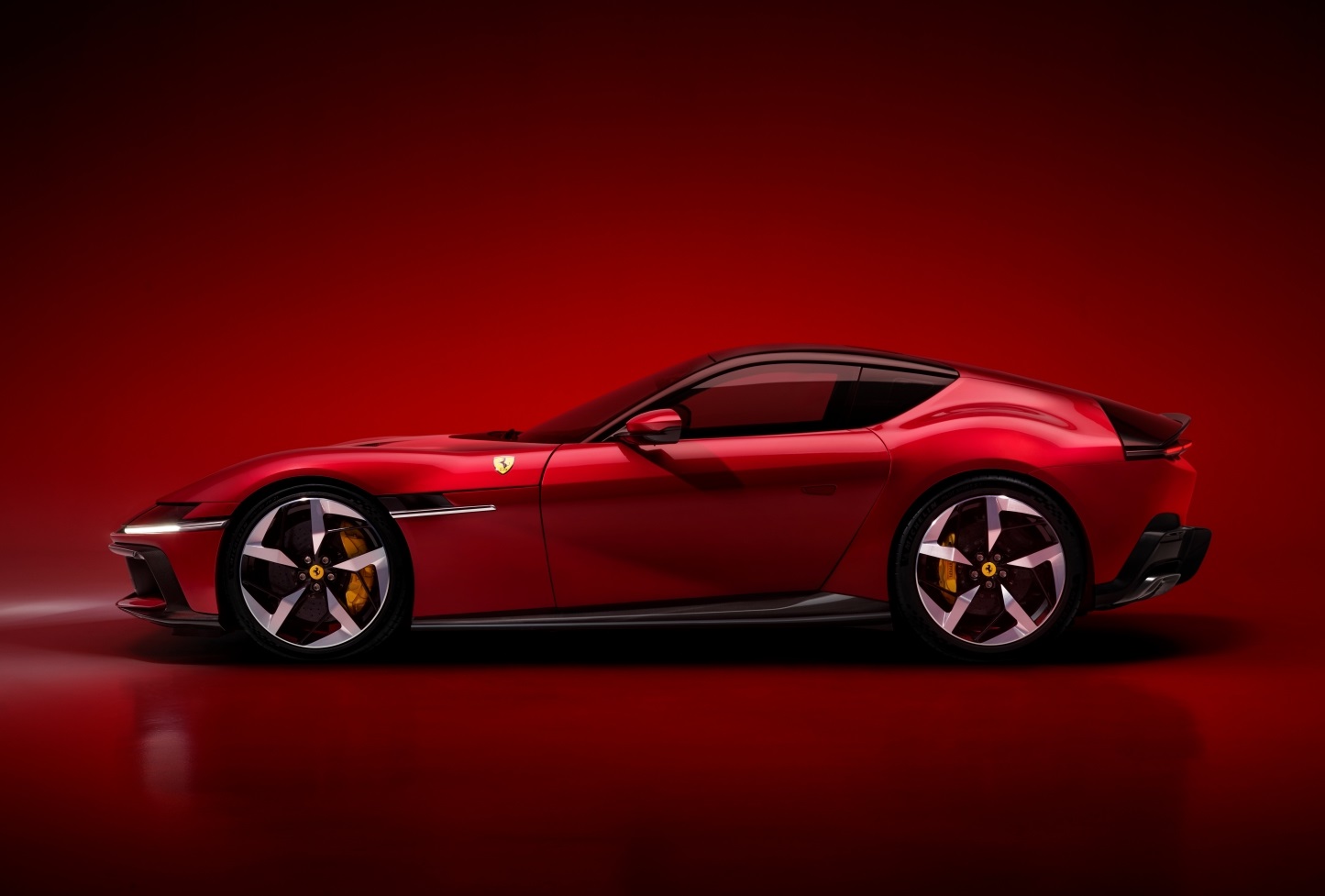 인테리어 스타일은 페라리 듀얼 콕핏 구조에서 영감을 받았다. 이 레이아웃은 페라리 로마와 로마 스파이더, 그리고 페라리 푸로산게에 적용된 바 있다. 운전자와 탑승자를 위한 두개의 모듈로 이뤄진 12실린드리의 캐빈은 거의 대칭적인 구조로 이뤄져 있으며, 놀라운 수준의 편안함과 더불어 몰입감 높은 드라이빙을 경험할 수 있다.