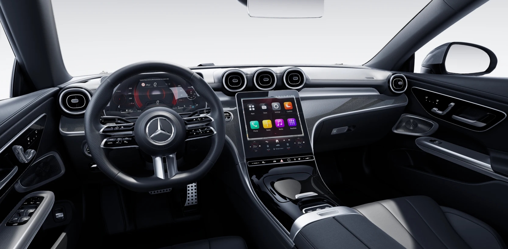 먼저, 전 라인업에 3세대 MBUX 인포테인먼트 시스템을 적용해 자동화된 차량 설정을 지원하는 루틴 및 티맵 모빌리티의 실시간 교통정보에 기반한 자체 내비게이션을 이용할 수 있다. 또한 CLE 450 4MATIC 카브리올레의 경우, 다양한 엔터테인먼트 플랫폼, 화상회의, 게임, 스트리밍 서비스를 제공하는 서드파티 앱도 사용 가능하다.
