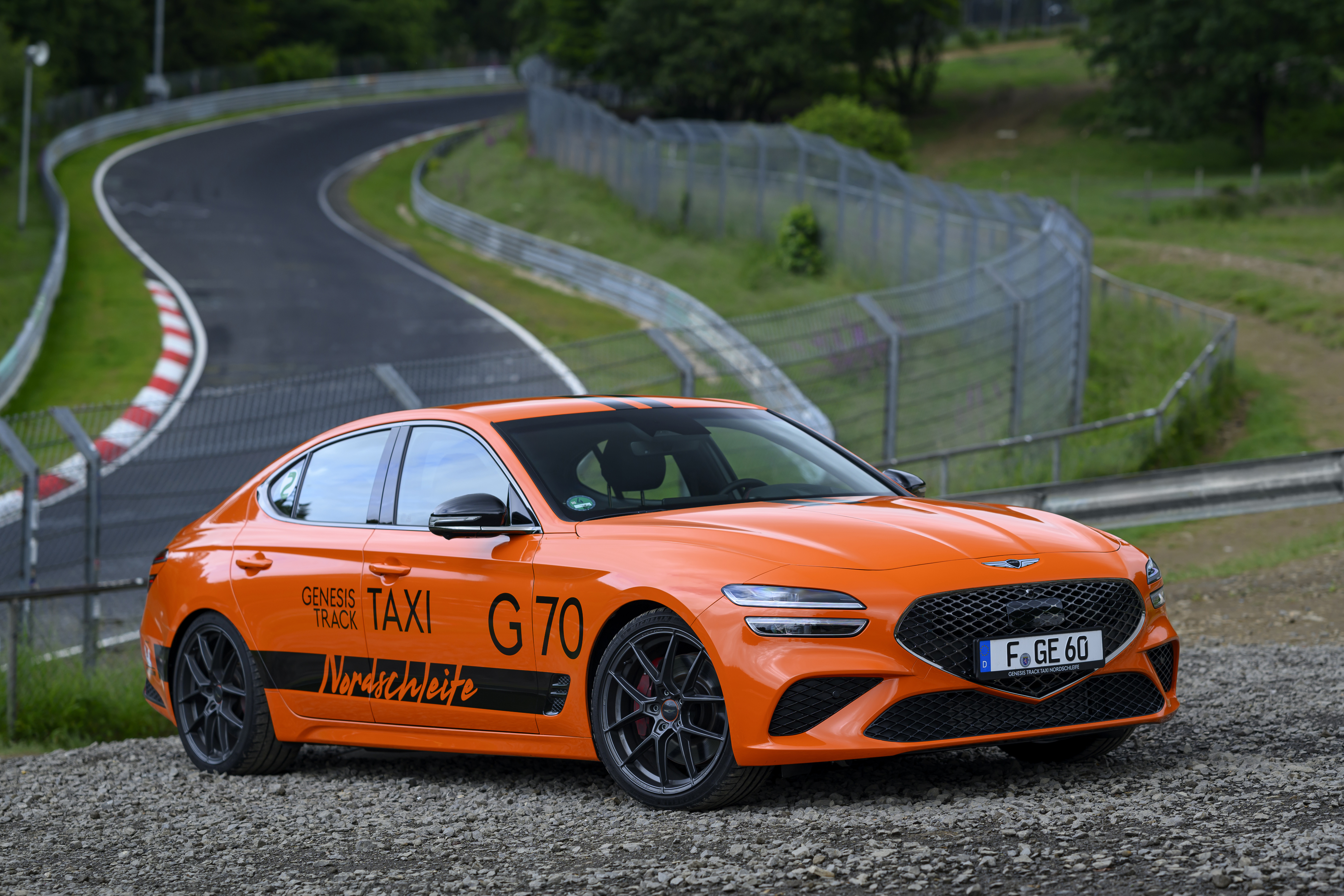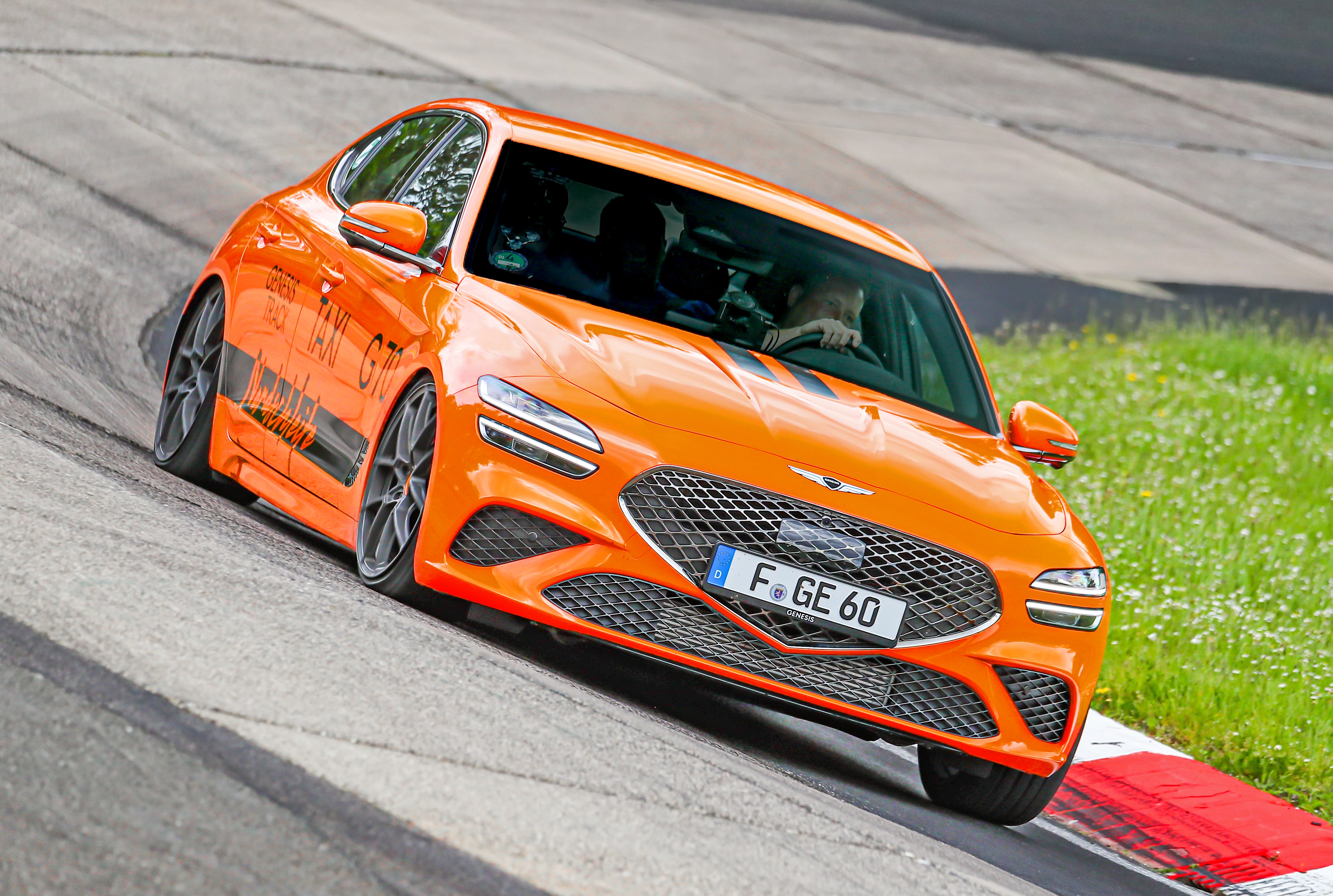 제네시스 G70, 독일 서킷서 '트랙 택시'로 달린다...강렬한 마그마 오렌지색 '눈길'