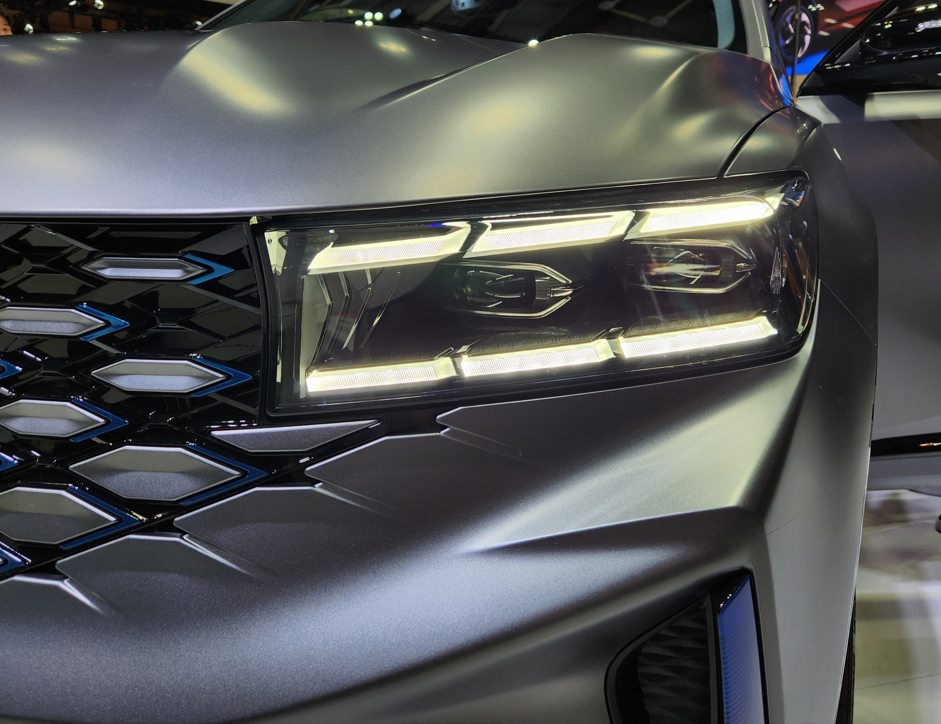 전면부 프런트 그릴은 로장주 엠블럼을 닮은 시그니처 패턴을 차체와 동일한 컬러로 표현해 차량에 강렬한 개성을 나타낸다.
