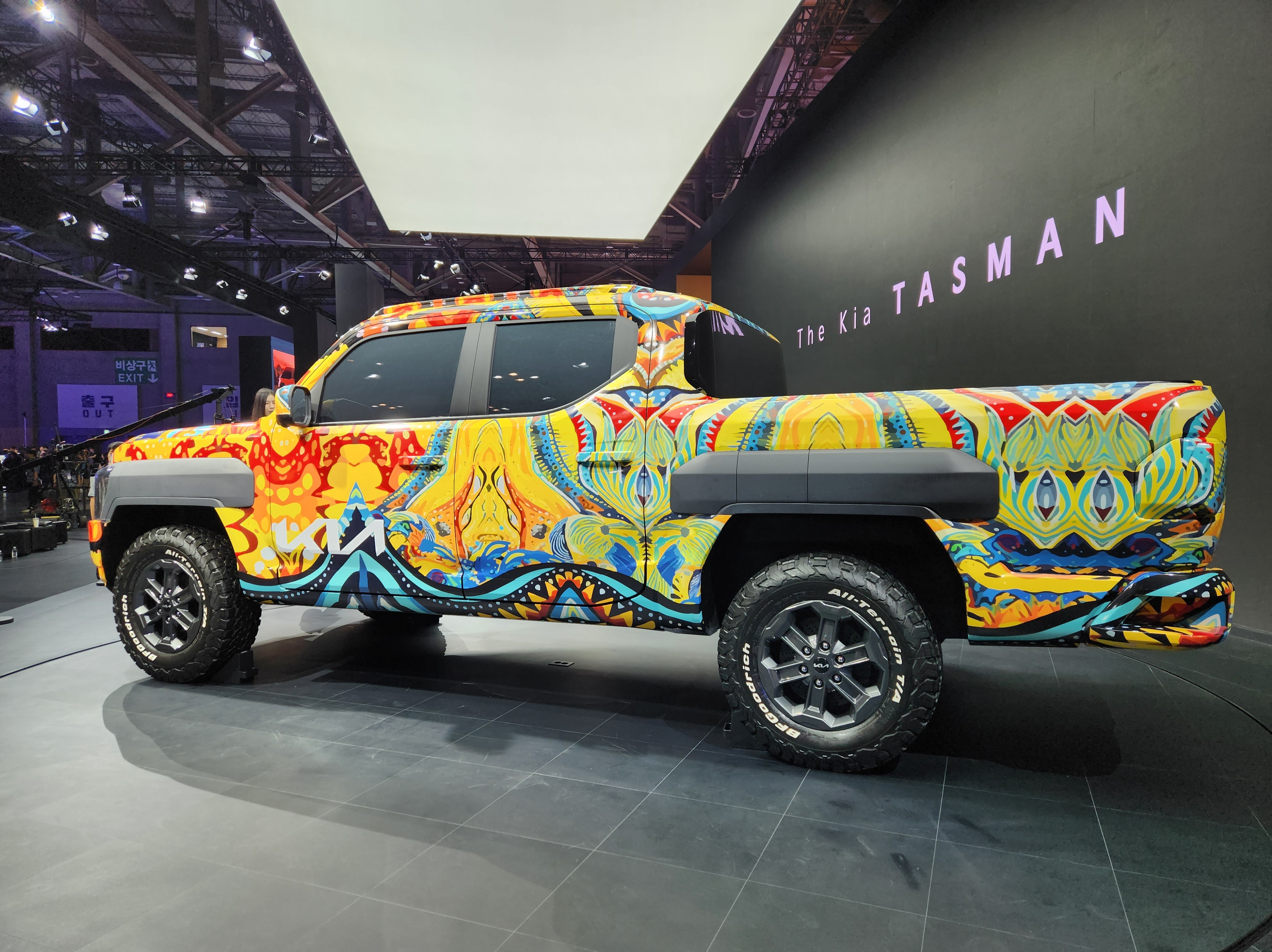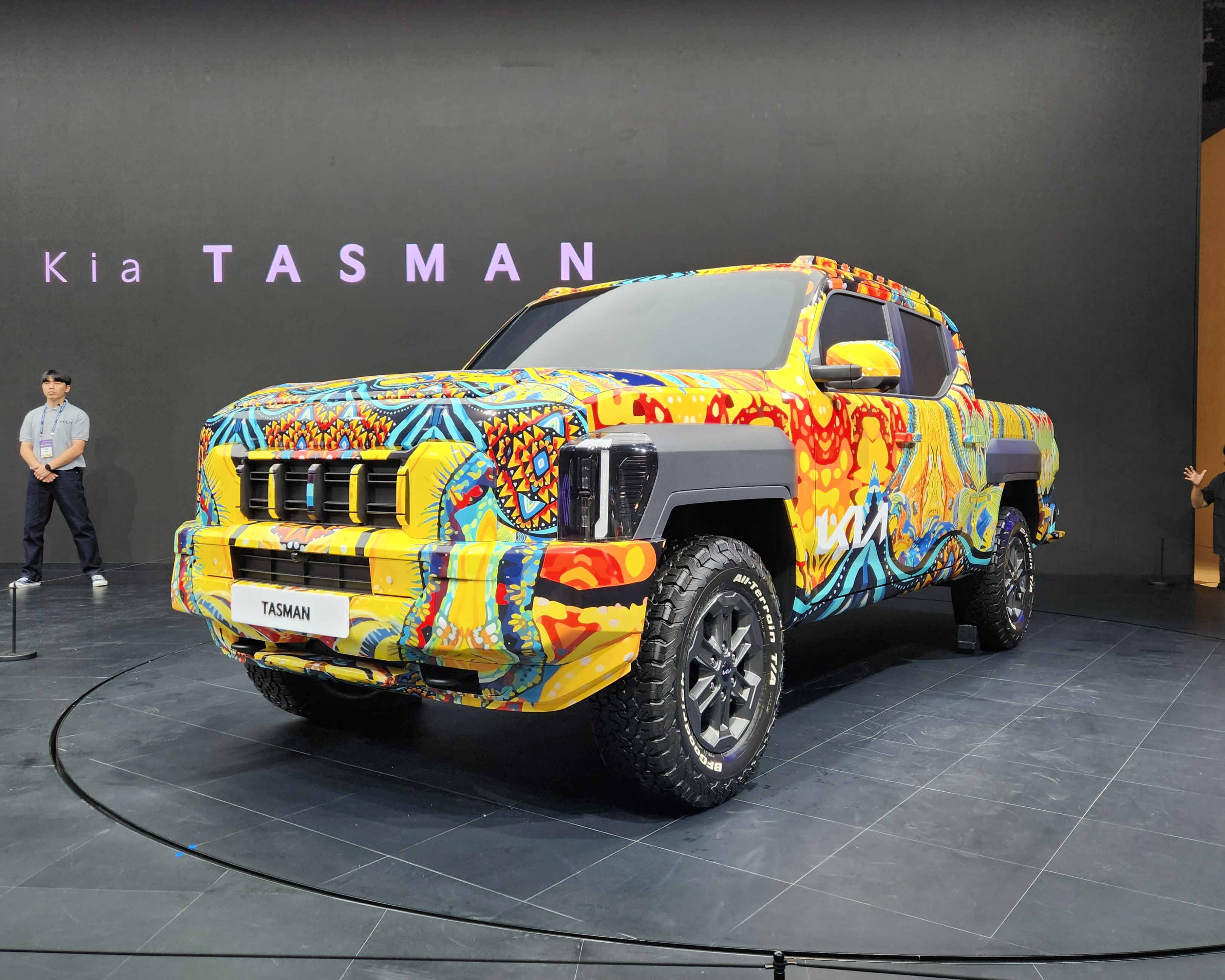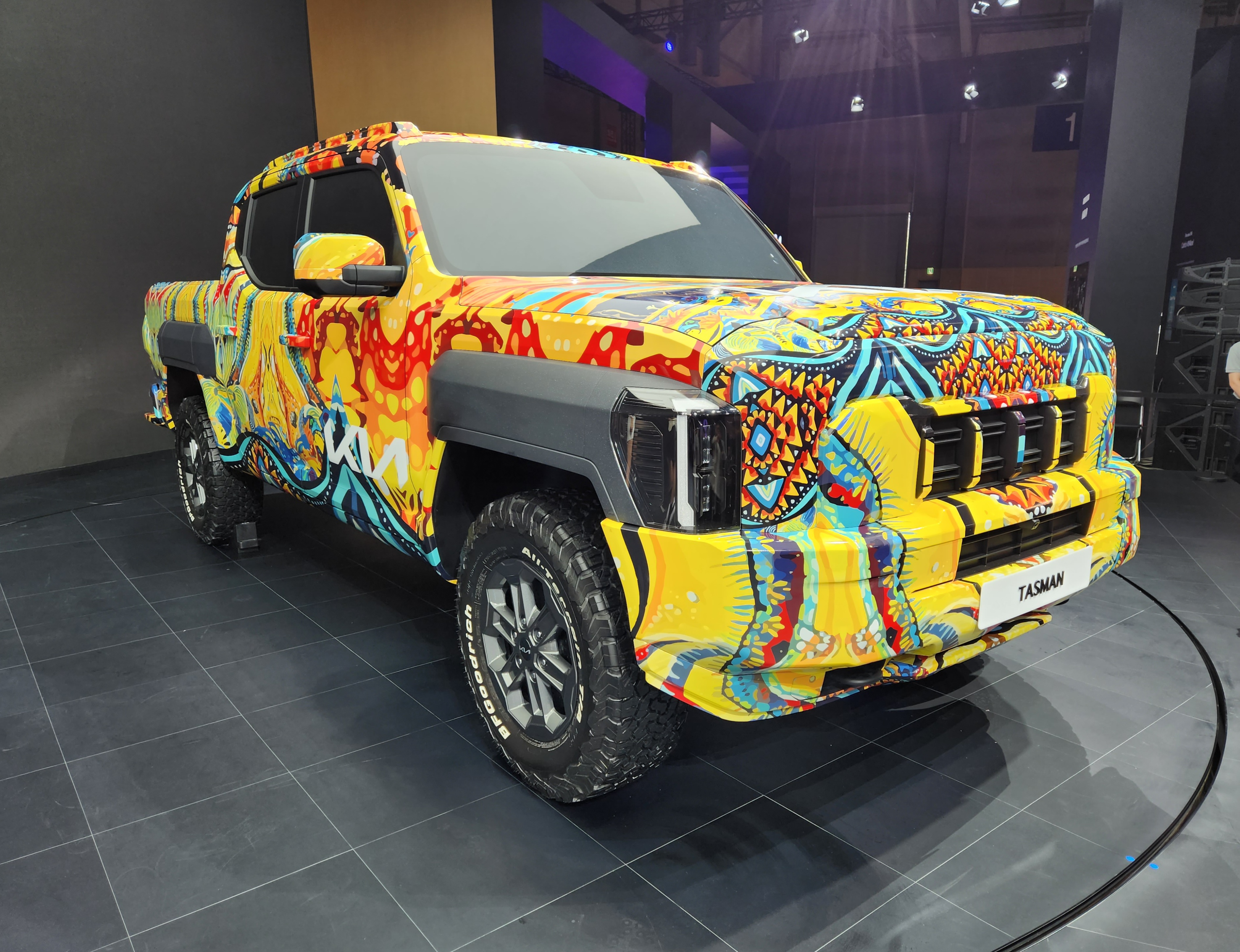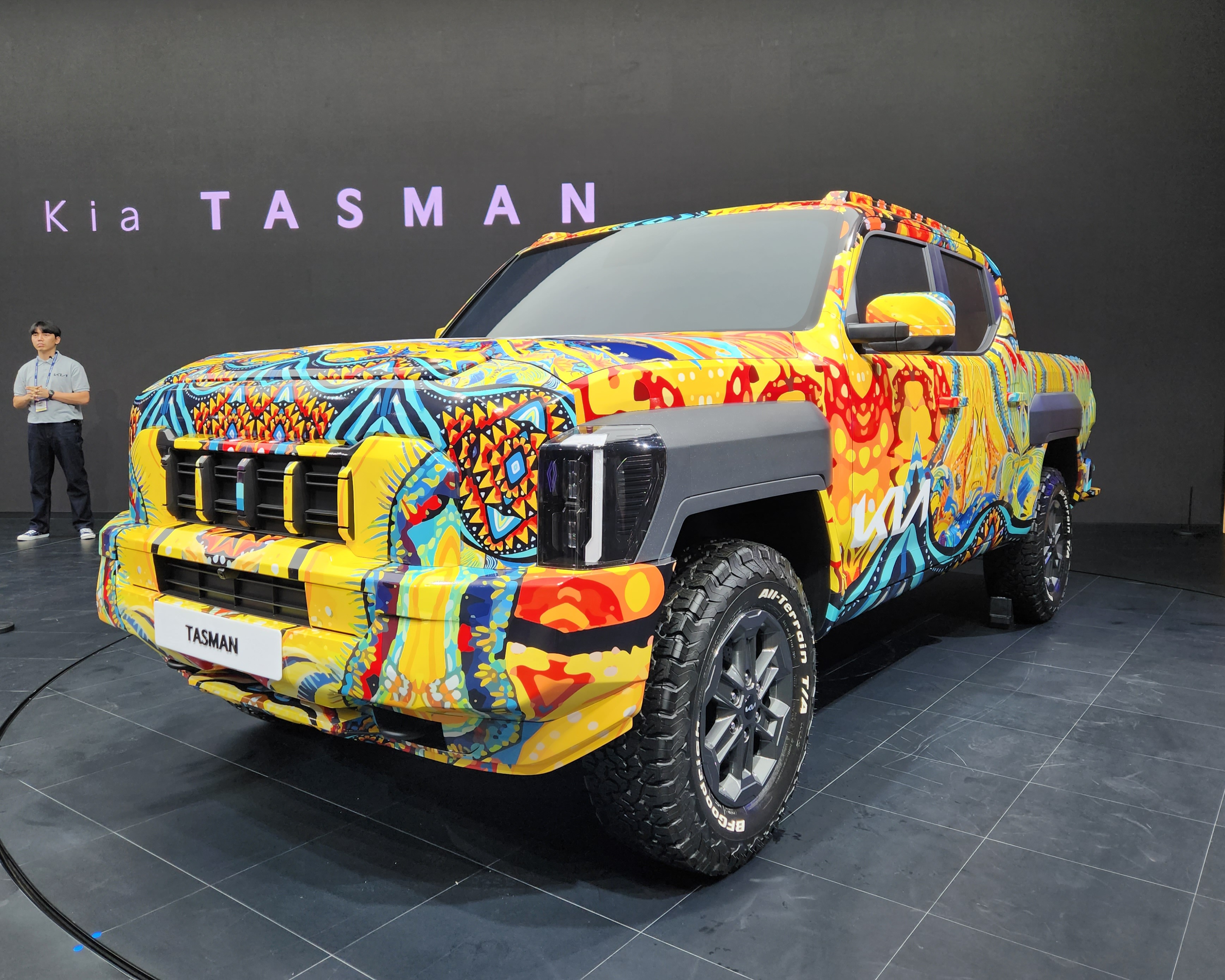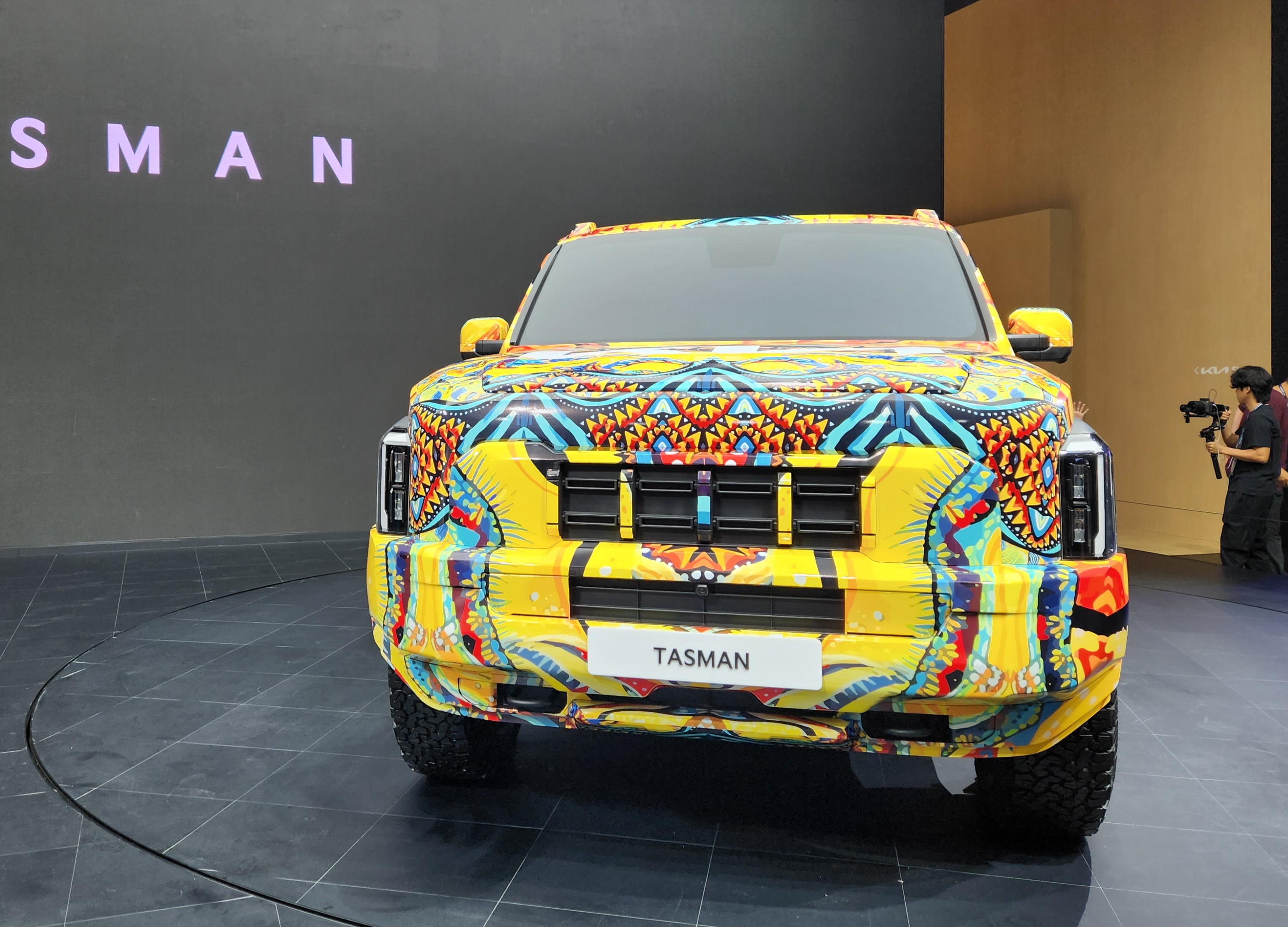 기아(KIA)가 부산 벡스코에서 열리는 '2024 부산모빌리티쇼'에 참가, 브랜드 첫 정통 픽업 '더 기아 타스만' 전용 위장막 모델 실물을 국내 최초로 공개했다.