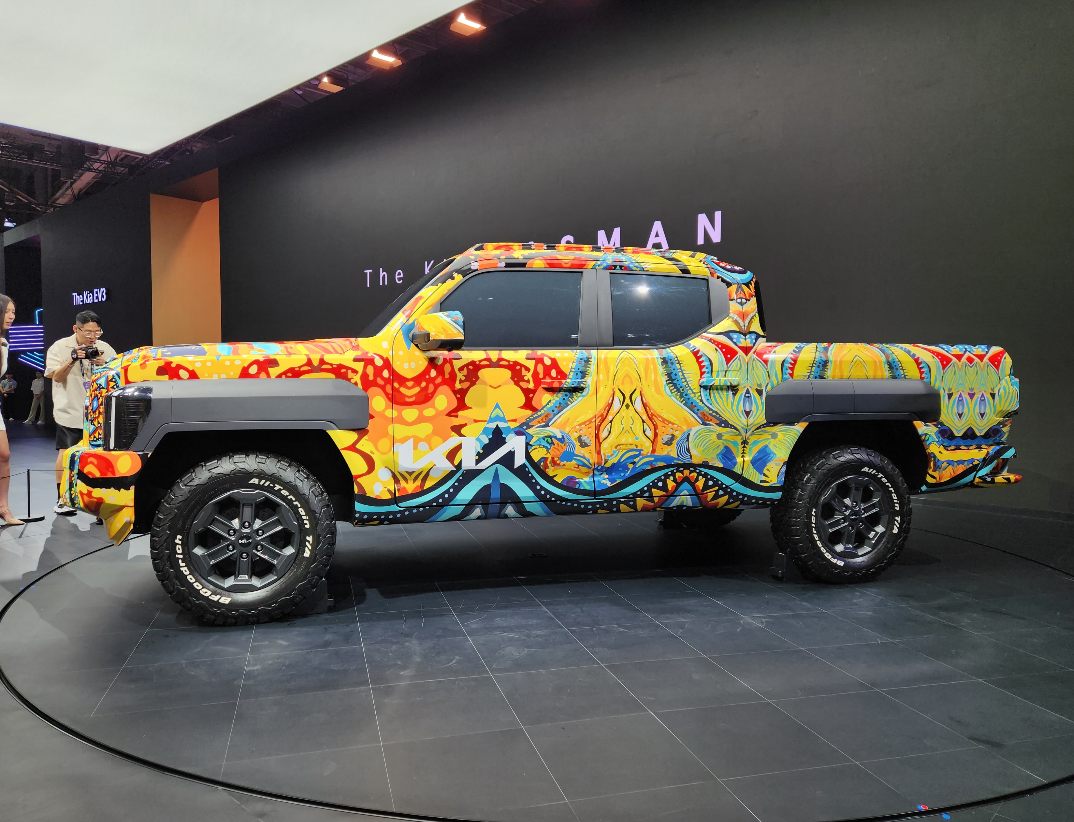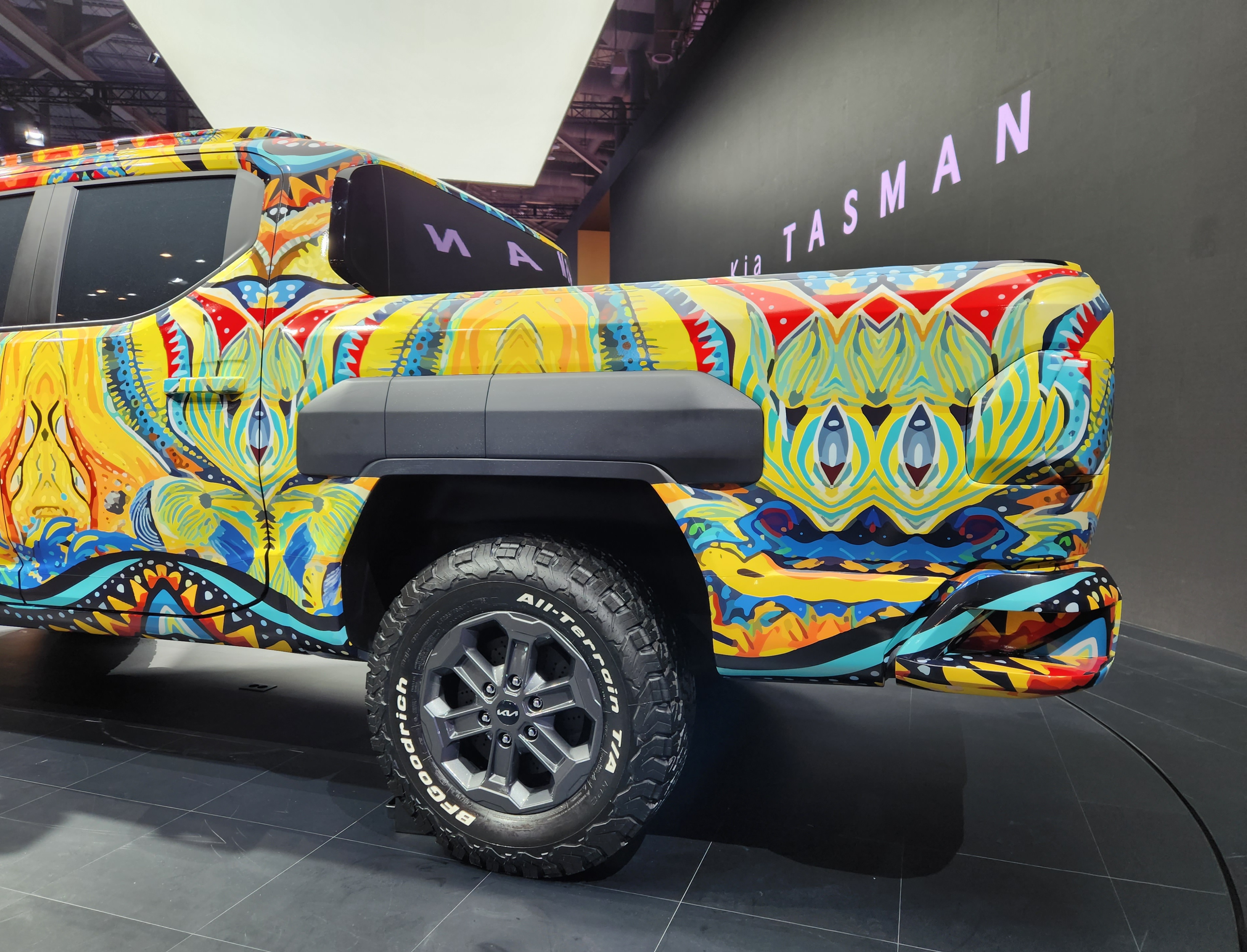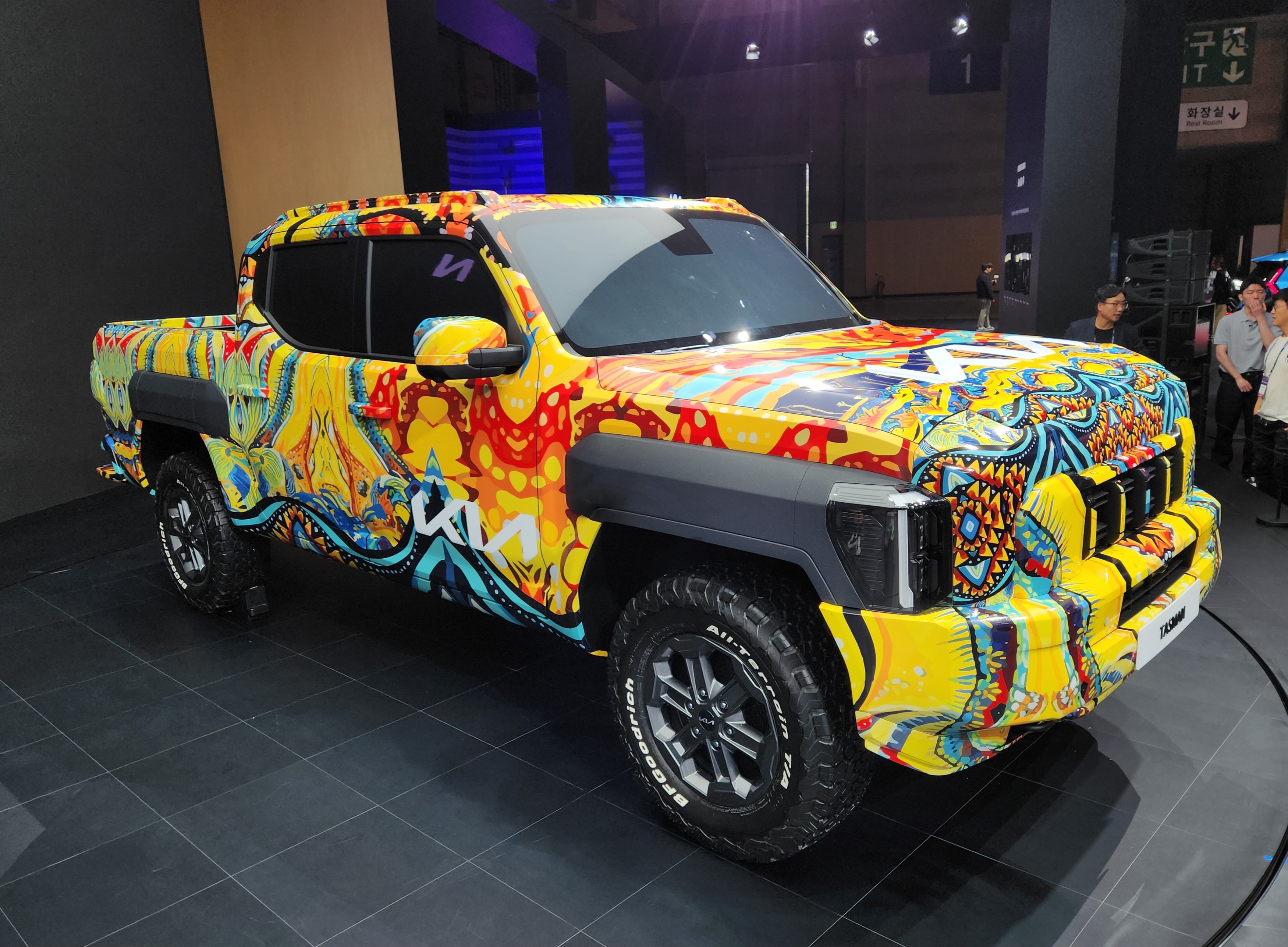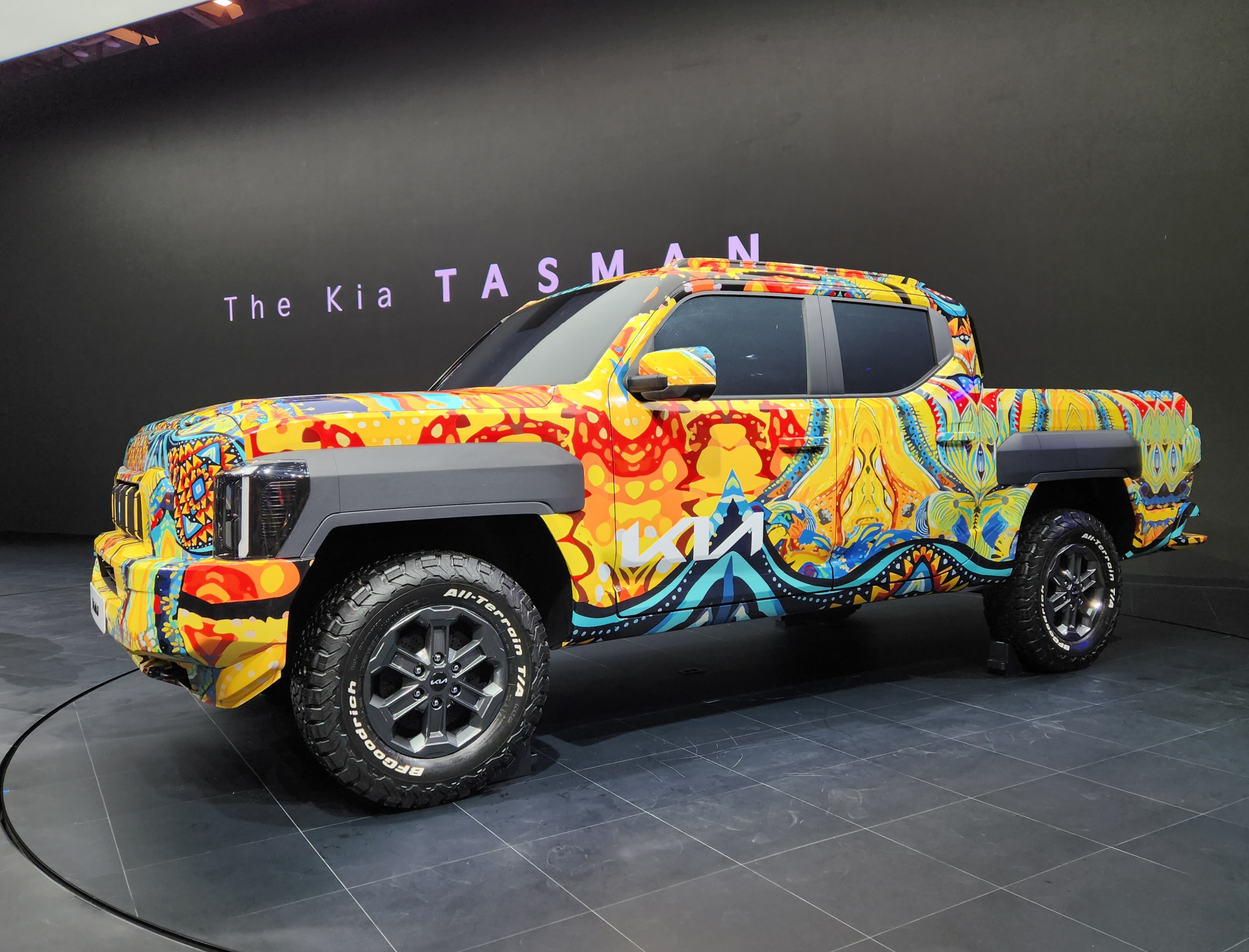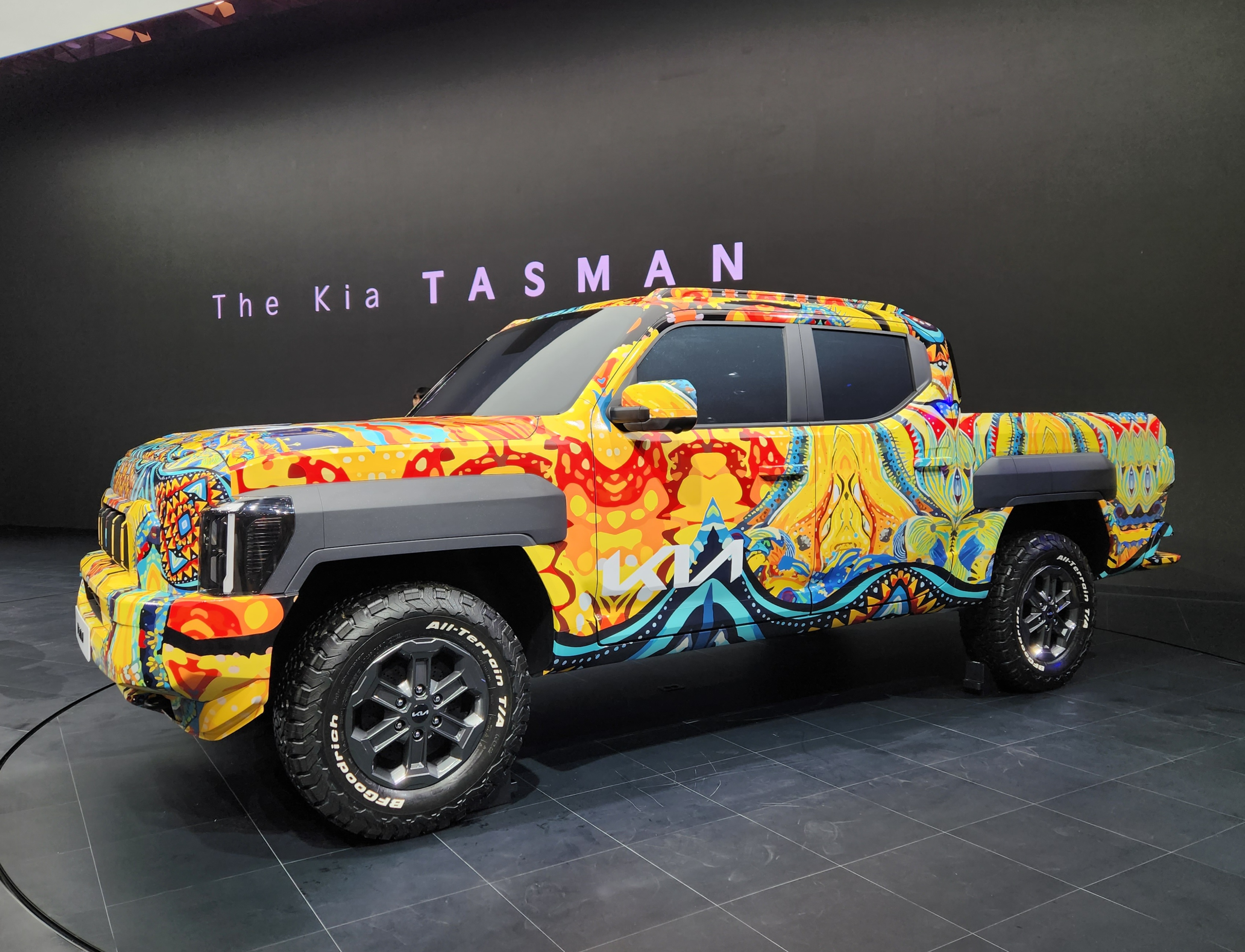 기아(KIA)가 부산 벡스코에서 열리는 '2024 부산모빌리티쇼'에 참가, 브랜드 첫 정통 픽업 '더 기아 타스만' 전용 위장막 모델 실물을 국내 최초로 공개했다.