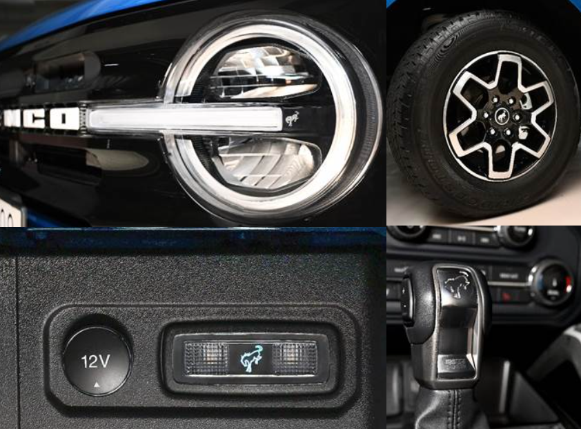 1960년대 중반, 포드가 브롱코 브랜드를 처음 론칭했을 때 함께 소개한 고유의 야생마(Bucking Bronco) 엠블럼은 자유, 강인함, 모험심 등의 가치를 상징하는 한편, 브롱코의 오프로드 능력을 직관적으로 보여주는 장치이다.