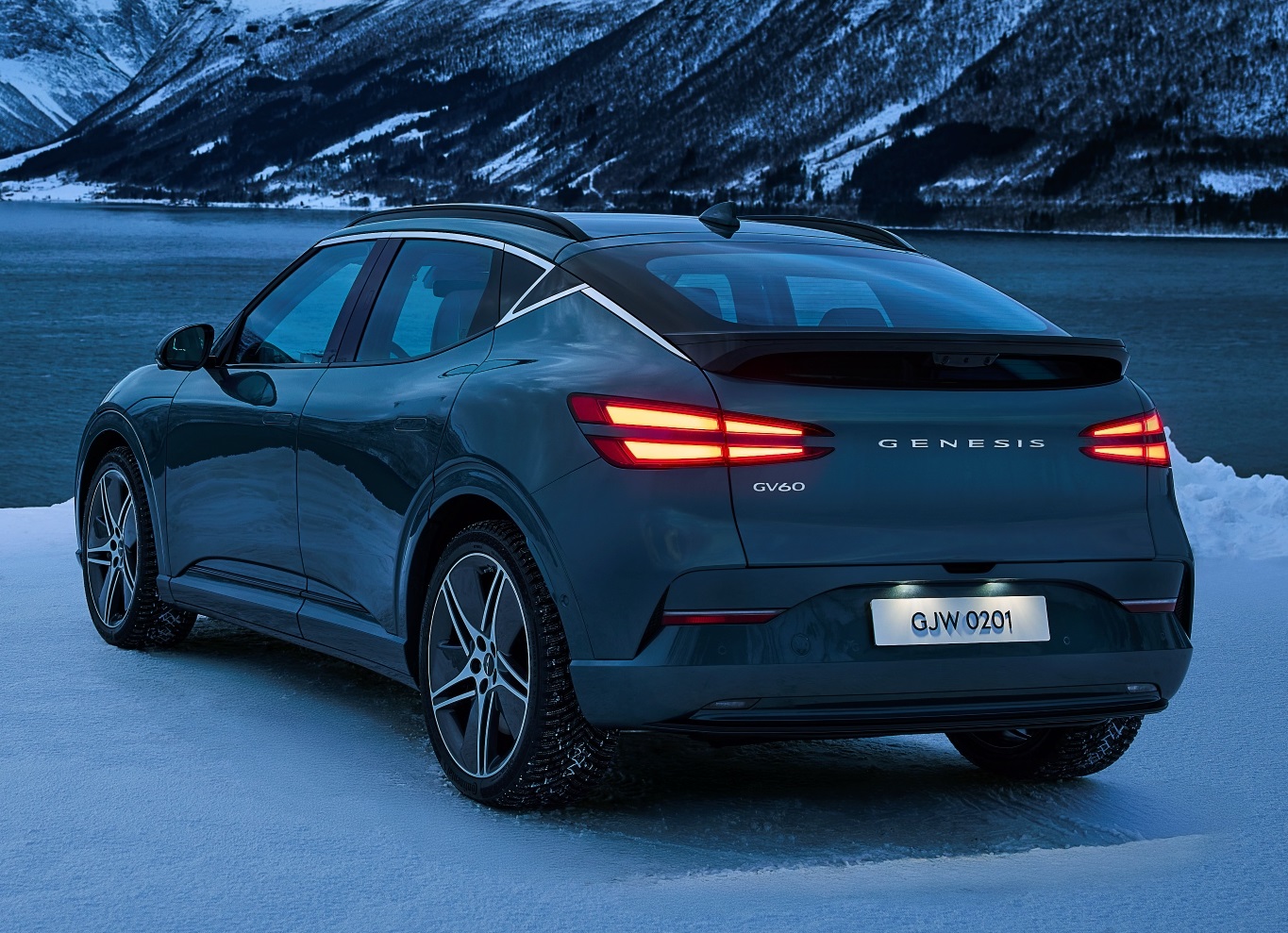 측면부는 날렵한 5-스포크 기반의 '21인치 다크 메탈릭 글로시 그레이 휠'과 ‘20인치 라이트 실버 휠’을 새롭게 적용하고 기존 19인치 휠의 색상을 다크 매트 그레이로 변경해 강인하면서도 세련된 분위기를 구현했으며, 차체 색상의 휠아치 클래딩을 적용해 럭셔리 이미지를 강화했다. 후면부의 리어 스키드 플레이트는 차체 색상과 동일한 디자인으로 깔끔하게 구현돼 모던하고 견고한 SUV 느낌을 부여하는 동시에 GV60의 넓고 낮은 스탠스를 강조한다.