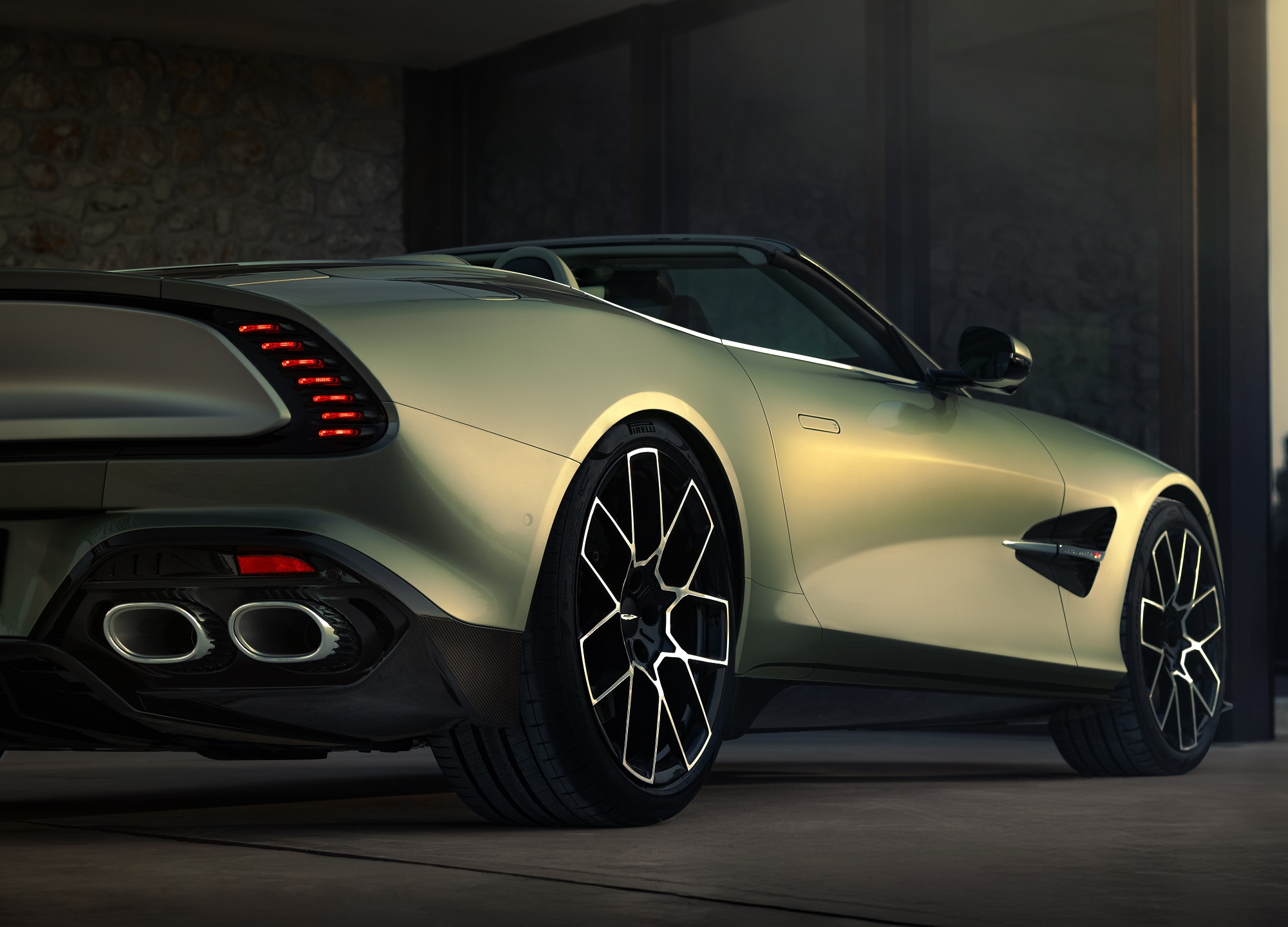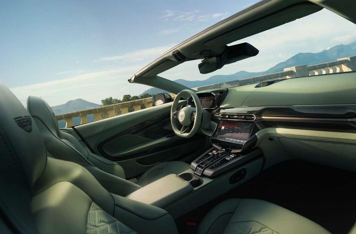 또 80mm 연장된 휠베이스는 프론트 엔진, 캡-리어워드 스타일이라는 애스턴마틴 특유의 비율을 더욱 강조한다. 후면부에는 상향된 캄 테일 디자인이 적용되어 있으며, 차량 후면에 마치 공중에 떠 있는 듯한 형태로 배치된 ‘실드’와 함께 애스턴마틴 특유의 존재감을 드러낸다.
