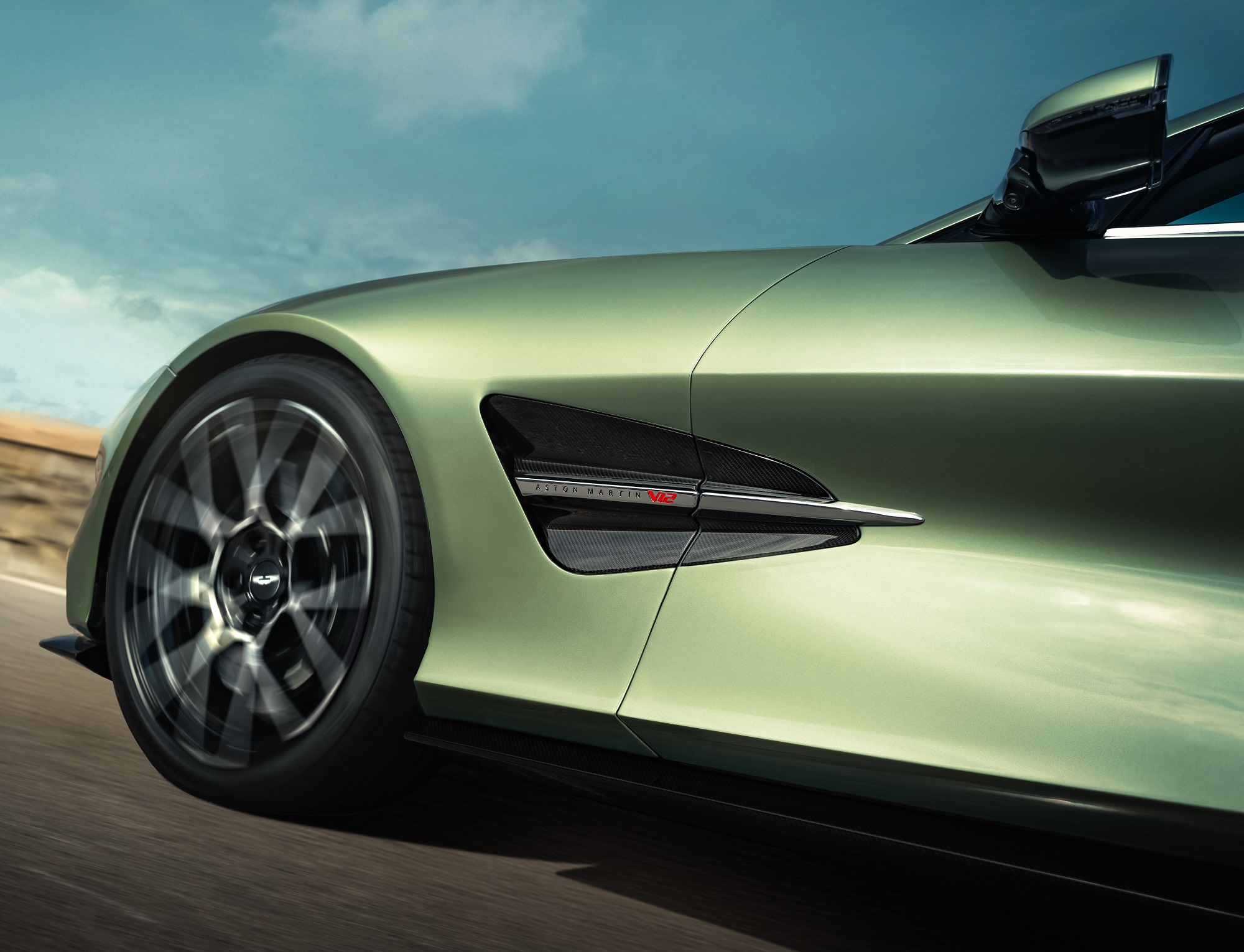 매트릭스 LED 헤드램프는 주간주행등이 통합된 새로운 라이트 시그니처를 선보인다. 헤드램프 내부에는 애스턴마틴 로고가 정교하게 새겨졌으며, 측면 스트레이크에는 레드 컬러의 ‘V12’ 모티프가 더해져 강렬한 인상을 완성한다.