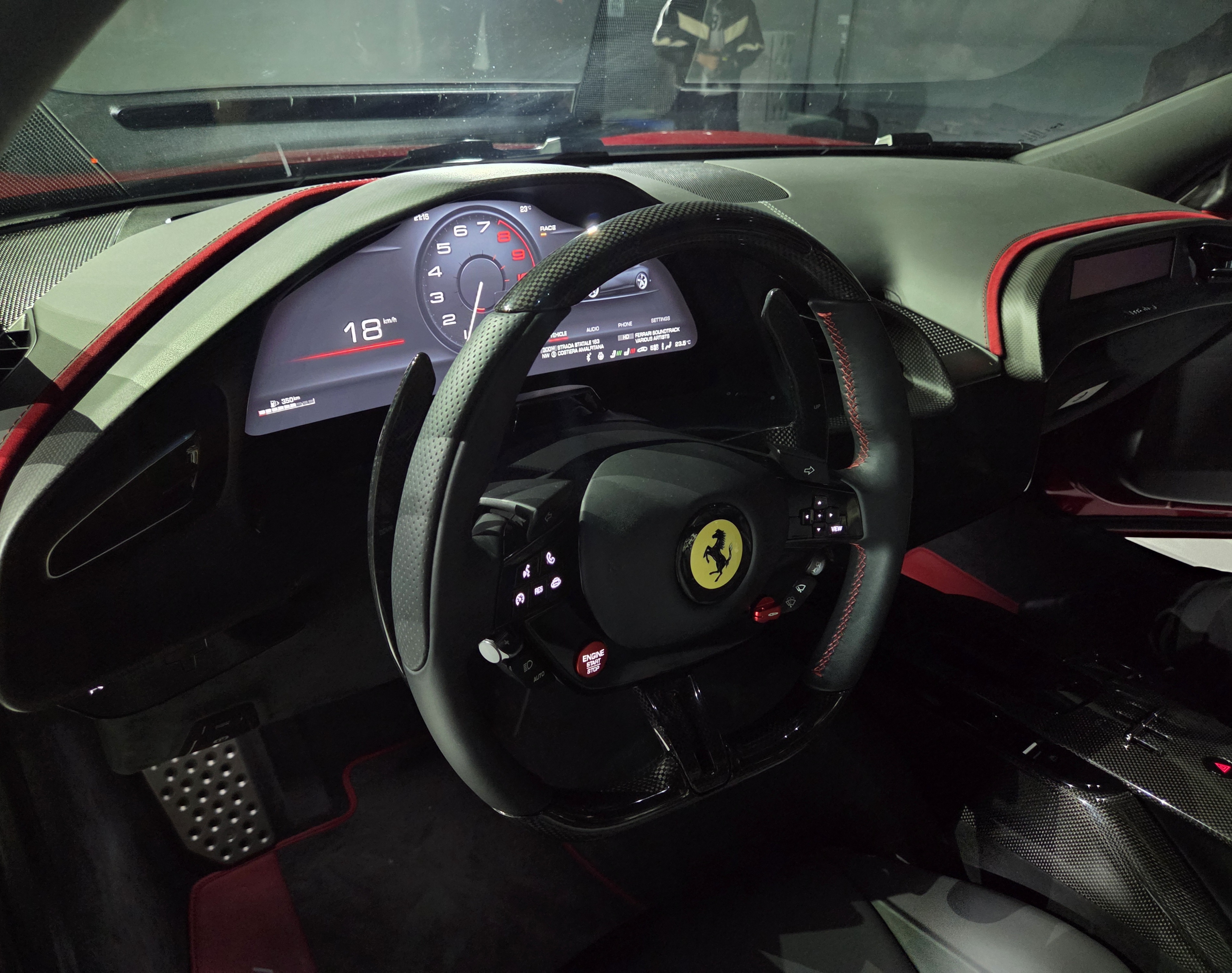 페라리의 상징인 시동 버튼 역시 물리 버튼으로 돌아왔다. 또한 운전자와 동승자 모두가 상호작용할 수 있도록 대시보드 중앙에 수평형 터치스크린을 배치해 편의성을 높였다.