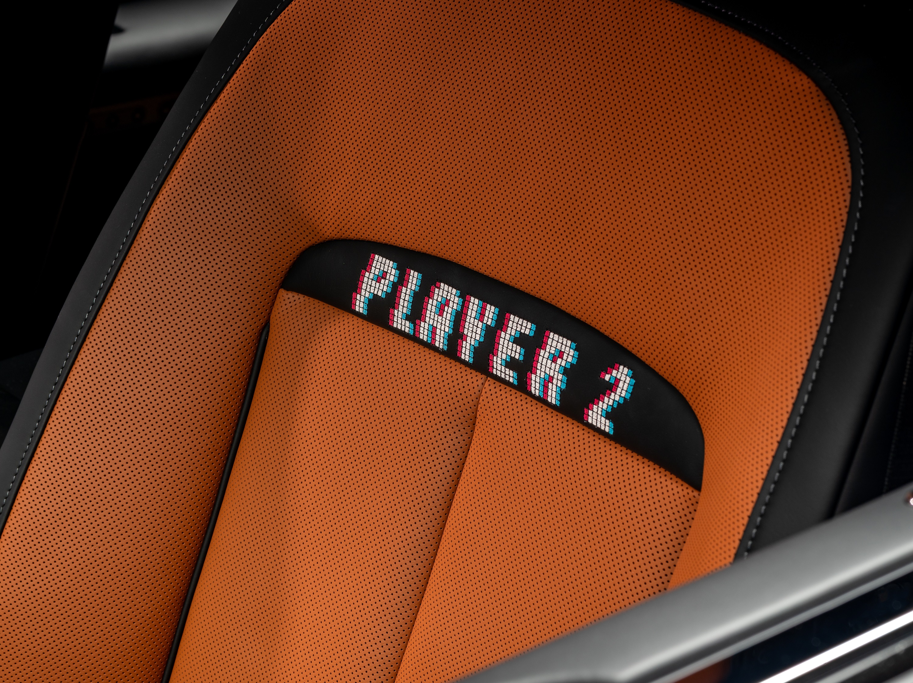 블랙과 캐스든 탄 색상으로 구성된 인테리어는 초기 디지털 시대에 대한 감각적 헌사로, 본격적인 탐험의 즐거움을 선사한다. 앞좌석에는 ‘Player 1’과 ‘Player 2’, 뒷좌석에는 ‘Player 3’와 ‘Player 4’라는 문구가 8비트 스타일 글꼴로 비스포크 자수 처리, 빈티지 아케이드 모니터의 전기적이고 흔들리는 듯한 색감을 담아냈다.