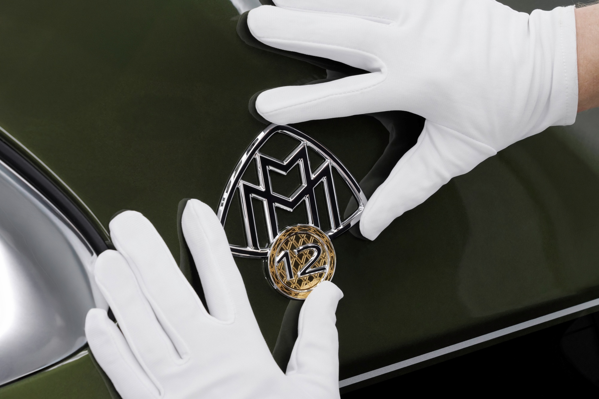 해당 엠블럼은 마이바흐의 상징인 더블 M에 크롬과 골드 메달을 더한 형태이며, 여기에 큼직하게 새겨진 숫자 '12'는 전설적인 마이바흐 제플린 DS 8의 보닛 장식을 기념한다. 24캐럿 순금 소재의 메달 링은 12분할 다이아몬드 각인으로 장식됐으며, 같은 소재의 메달 인레이에는 V12 엔진 실린더의 V자 배열에서 영감을 받은 정교한 V 패턴이 새겨져 있다.