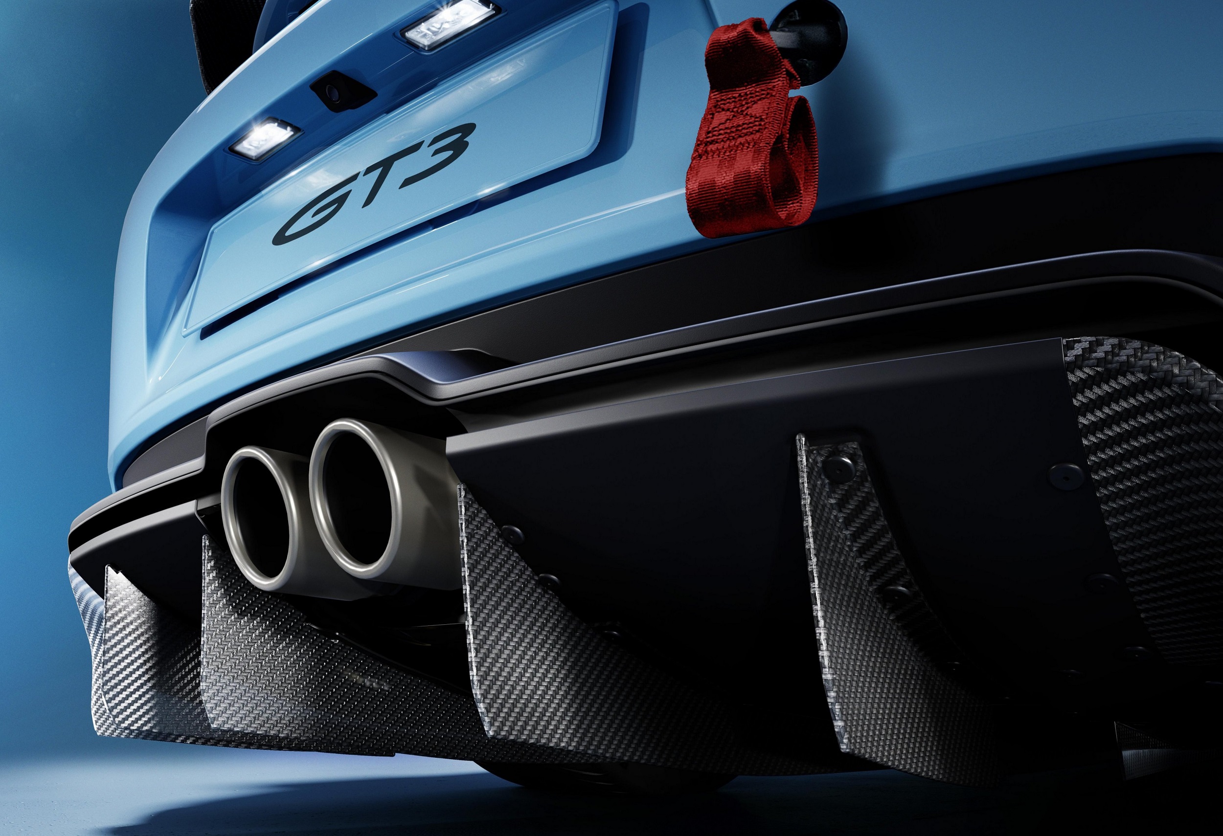구즈넥 서스펜션이 적용된 911 GT3 리어 윙은 더 넓어졌으며, 스포일러 엣지도 장착했다. 엔드 플레이트는 더 커지고 공기 흐름 최적화를 위해 안쪽으로 휘어져 있다. 길어진 핀의 리어 디퓨저는 항력을 증가시키지 않고 다운포스를 향상시킨다.