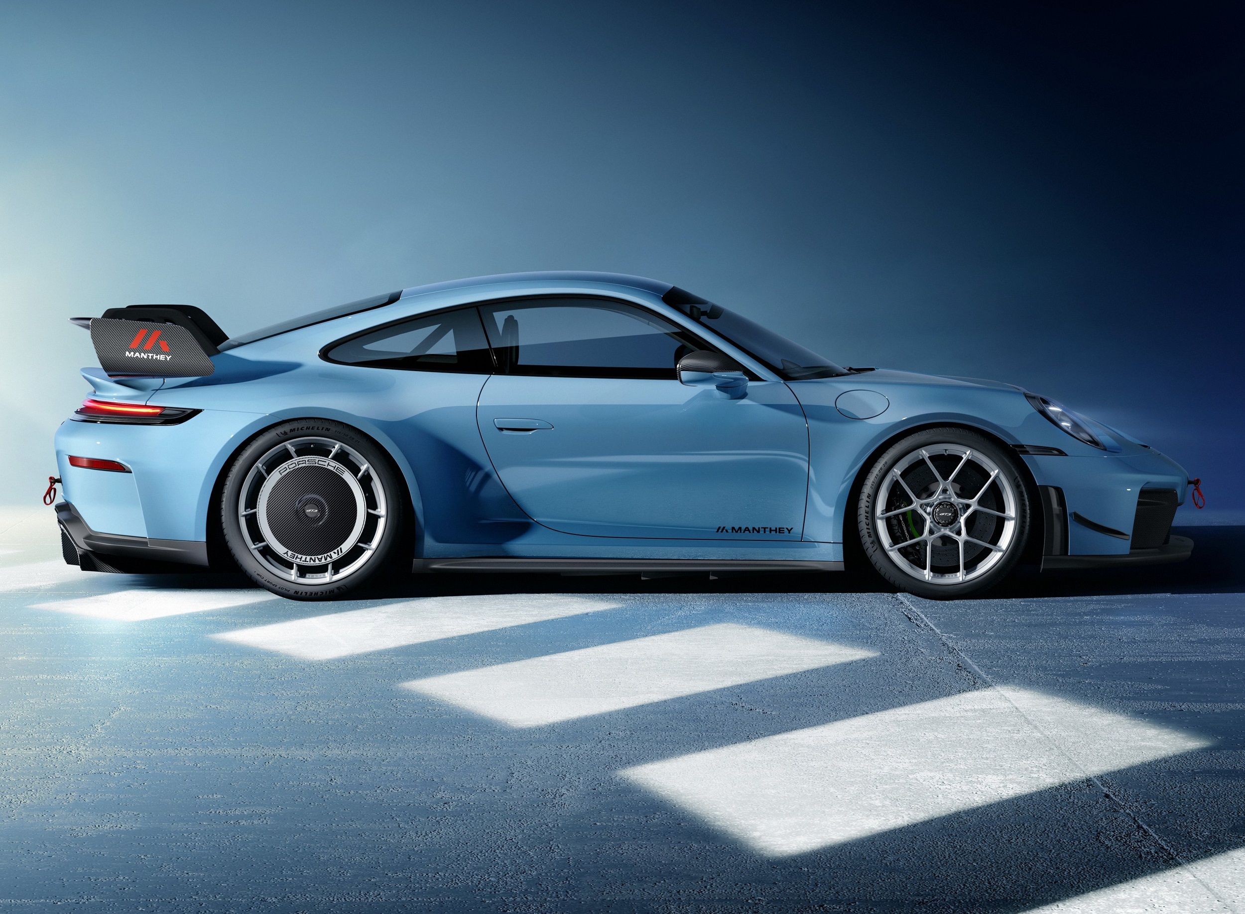현행 911 GT3를 기반으로 하는 '911 GT3 만타이 키트(911 GT3 Manthey Kit)'는 증가된 다운포스를 통해 코너링 속도를 높였으며, 트랙 주행에 맞춰 설계된 섀시와 고성능 브레이크가 적용됐다.