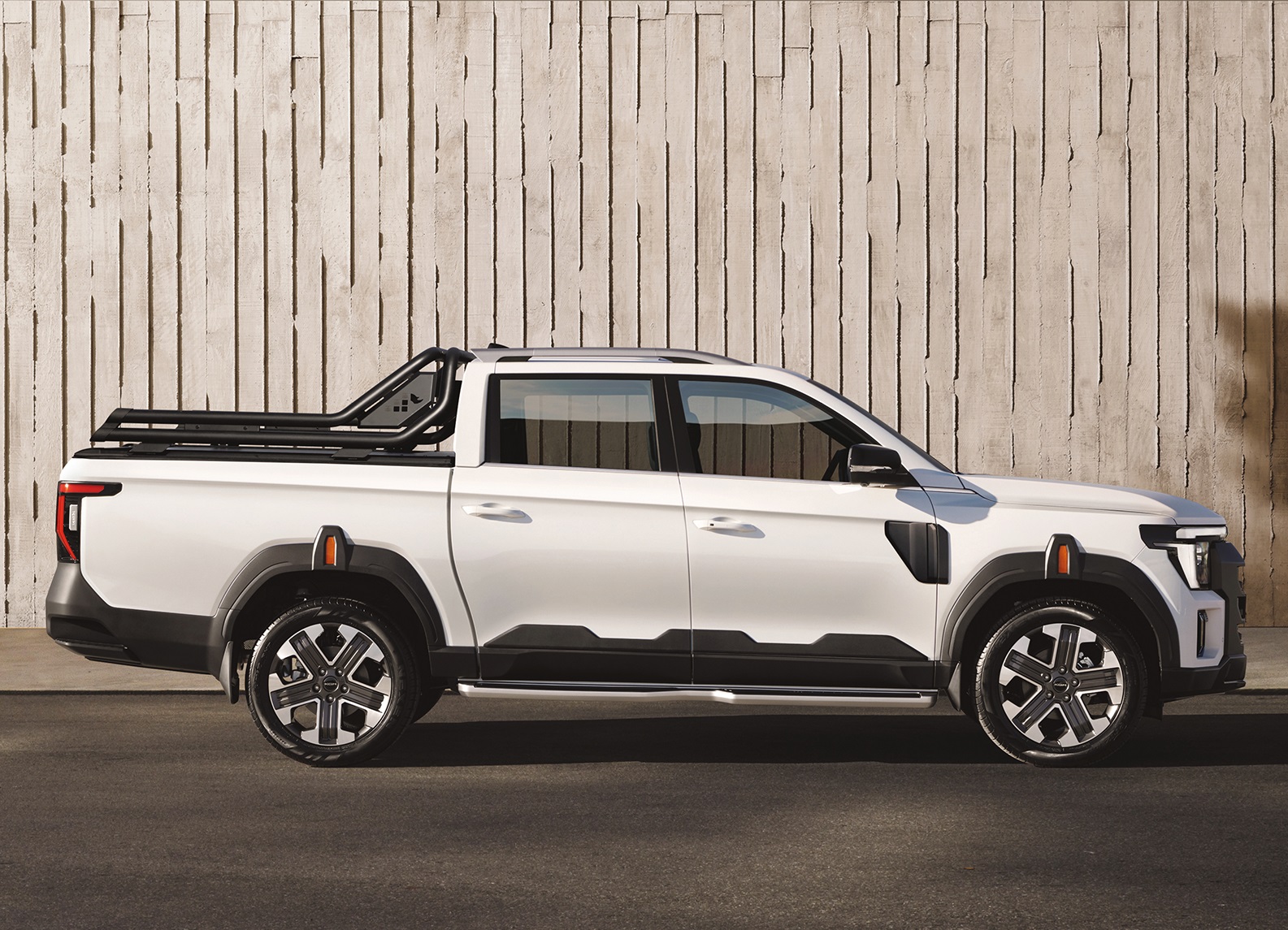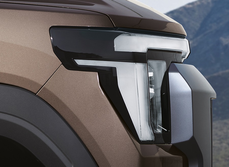 강인한 스퀘어 타입 프론트 범퍼와 라디에이터 그릴을 비롯해 역동적인 측면 캐릭터 라인과 볼륨감이 픽업 본연의 역동성을 더욱 강조한다.