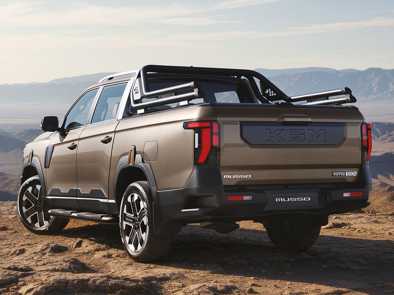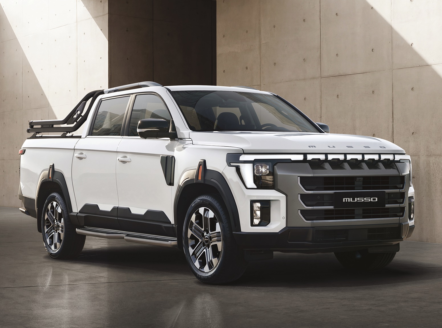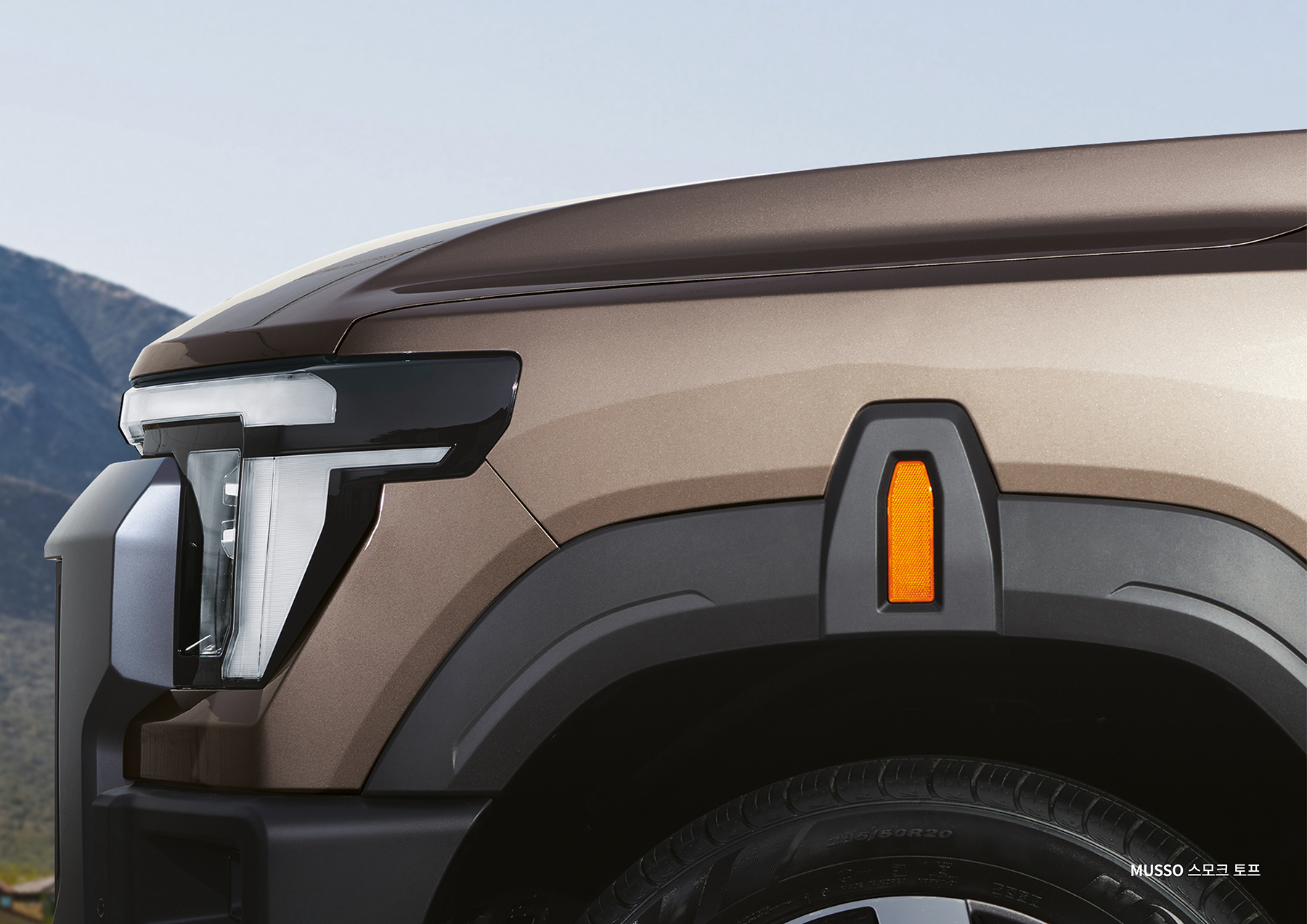 무쏘는 KG모빌리티의 디자인 철학을 바탕으로 정통 오프로드 스타일의 역동적이고 단단한 분위기를 구현해 오리지널 픽업 아이덴티티를 강화했다.