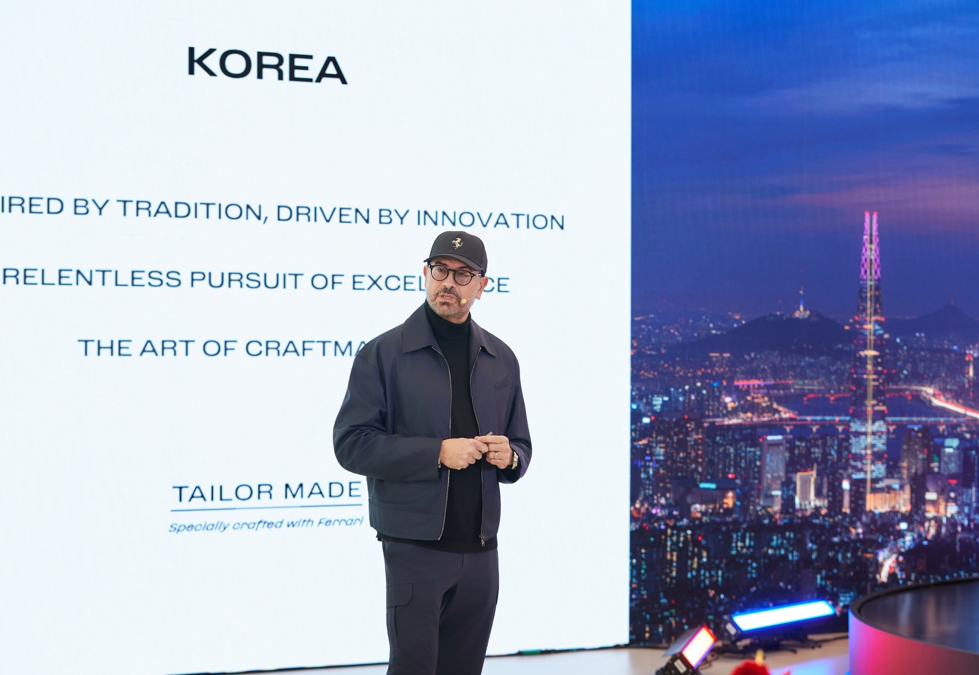 이 특별한 테일러메이드 차량은 아시아, 유럽, 북미 세 개 대륙을 아우르는 다학제적 협업의 결실이다. 아시아에서는 한국 고유의 유산을 대표하는 네 팀의 젊은 아티스트 정다혜, 김현희, 그레이코드와 지인, 이태현의 장인정신이, 유럽에서는 페라리 스타일링 센터의 디자인 리더십이, 북미에서는 디자인, 문화, 기술의 최신 트렌드를 조명하며 다수의 수상 경력을 보유한 글로벌 크리에이티브 플랫폼 '쿨헌팅'의 비전과 전문성이 하나로 결집됐다.