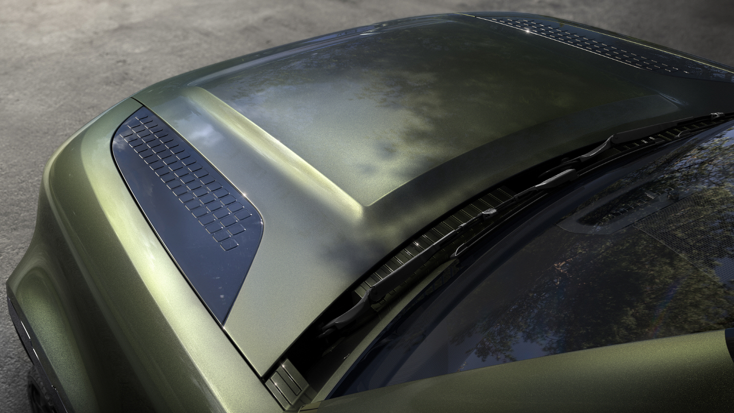 역동적 외관은 전·후방 범퍼 인서트, 보닛 및 사이드 벤트, 보닛 스크립트 등에 적용된 텍스처드 그라파이트 피니시로 완성된다. 이는 매트한 표면과 고강도의 메탈릭 플레이크가 어우러져 견고한 인상의 터프 럭셔리를 구현한다.