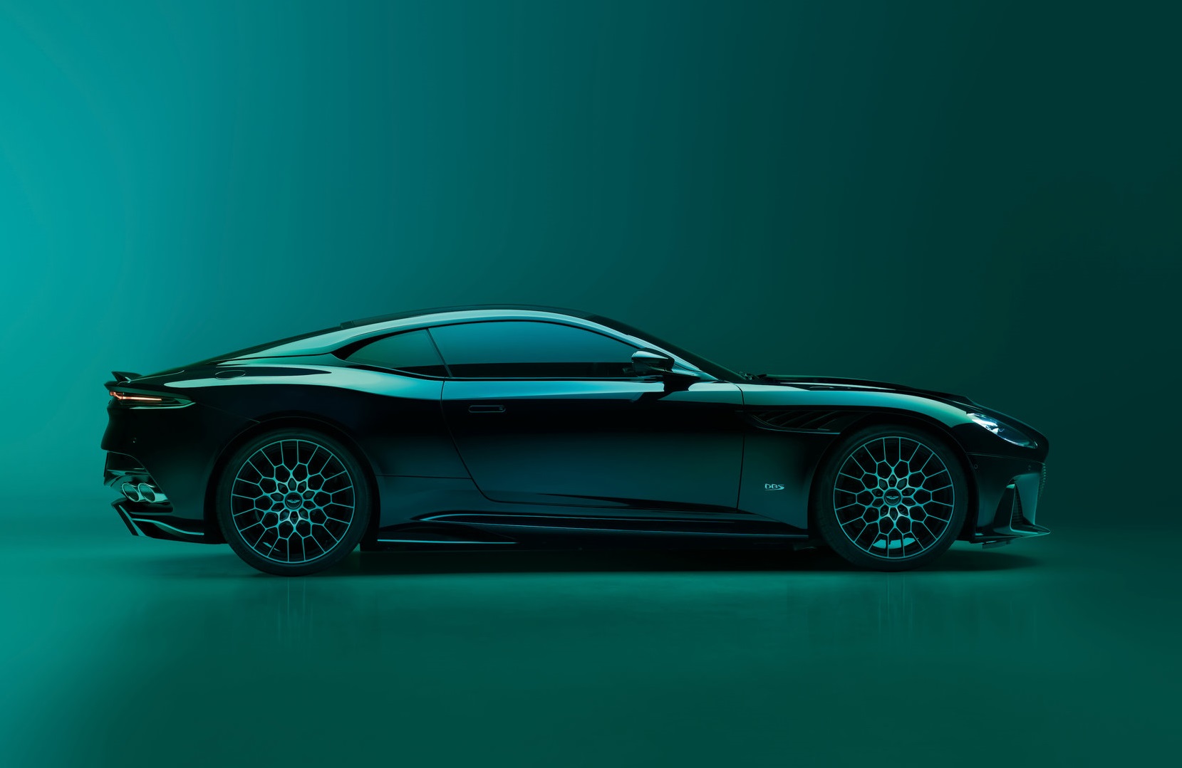변경된 디자인 요소로는 2x2 트윌 카본 파이버 캔트레일, 윈드스크린 서라운드, 미러 캡, 펜더 루버 등이 포함된다. 특히 새로운 카본 파이버 실은 시각적으로 차량 측면을 리어 휠 쪽으로 낮추어 DBS 특유의 형태감을 강조한다. 독특한 디자인의 리어 디퓨저는 차체 전반에 공기 역학적 균형을 유지하며, 전면과 후면의 흔들림이 없도록 돕는다.