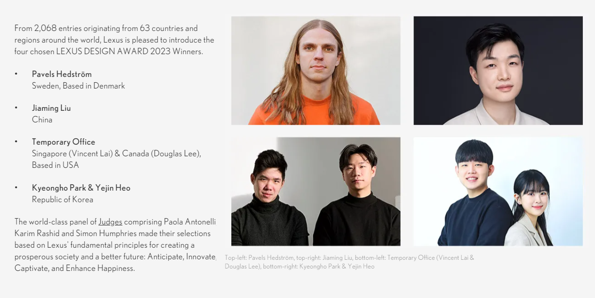 | 렉서스, 국제 디자인 어워드 수상작 발표...사회 문제 해결을 위한 작품들 주목! (0) | 2023.02.02 |