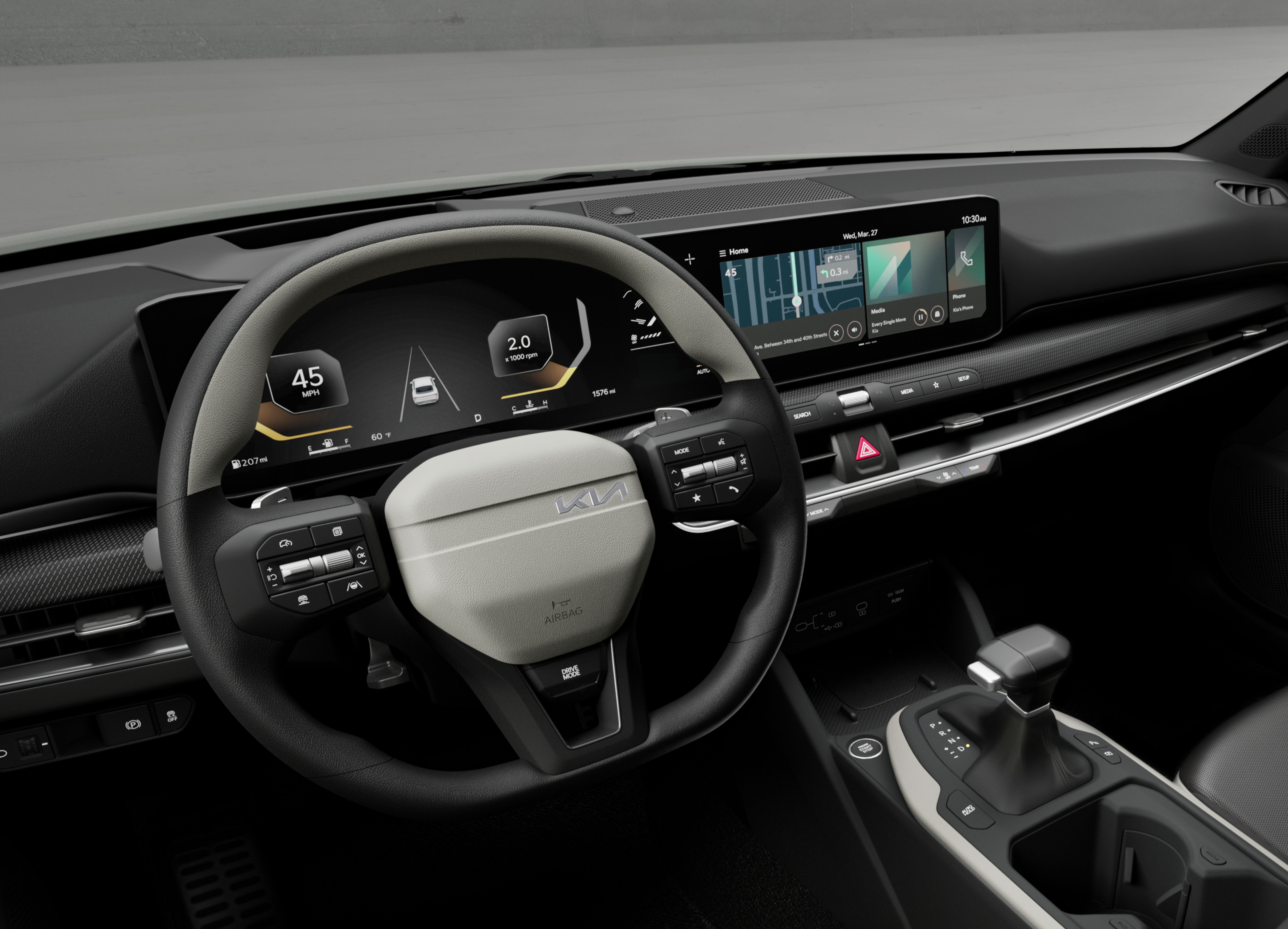 각각 12.3인치 클러스터 및 인포테인먼트 및 5인치 공조 디스플레이 등 약 30인치에 달하는 대화면 디지털 디스플레이를 적용하고 그 아래 사용 빈도가 높은 내비게이션 및 공조 기능을 빠르고 직관적으로 사용할 수 있도록 물리 버튼을 적용했다.