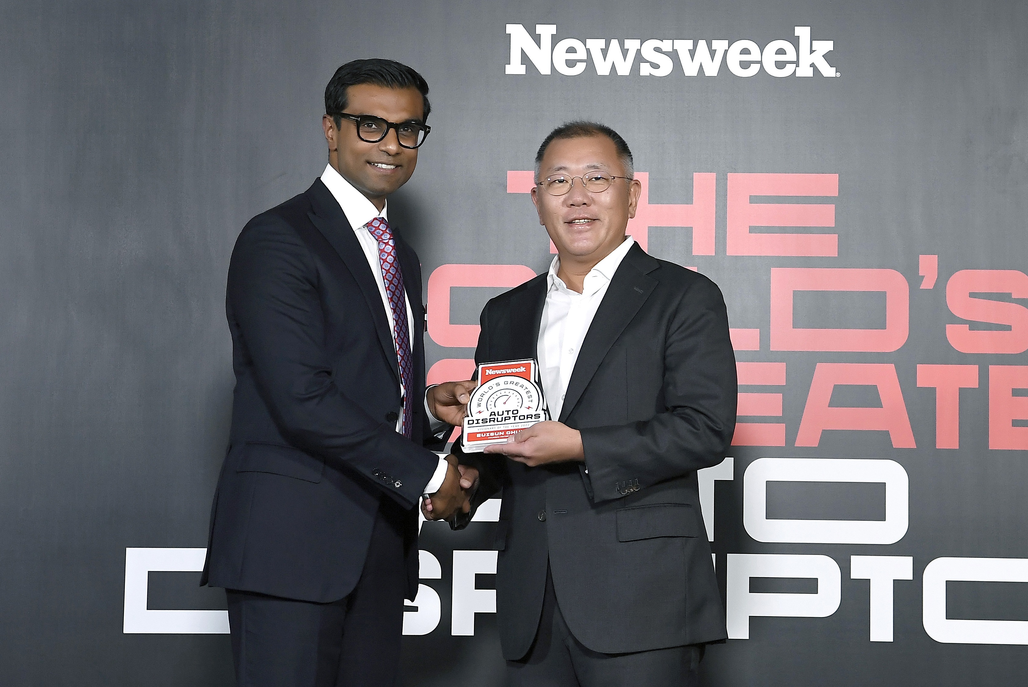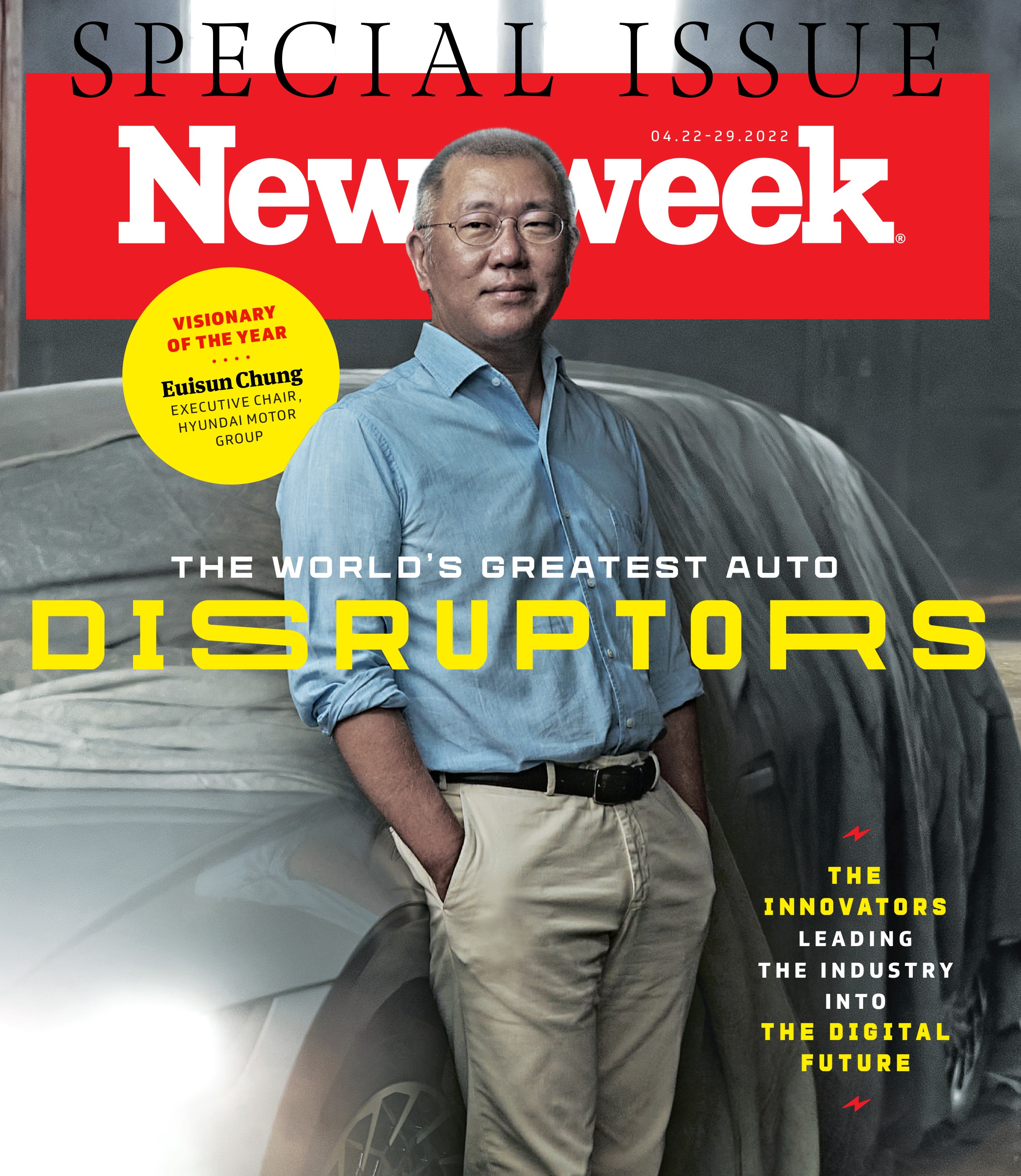 글로벌 유력 시사주간지 뉴스위크는 미국 뉴욕 세계무역센터에서 '2022 세계 자동차산업의 위대한 파괴적 혁신가들' 시상식을 열고, 현대차 그룹의 정의선 회장을 '올해의 비저너리' 수상자로 발표했다.
