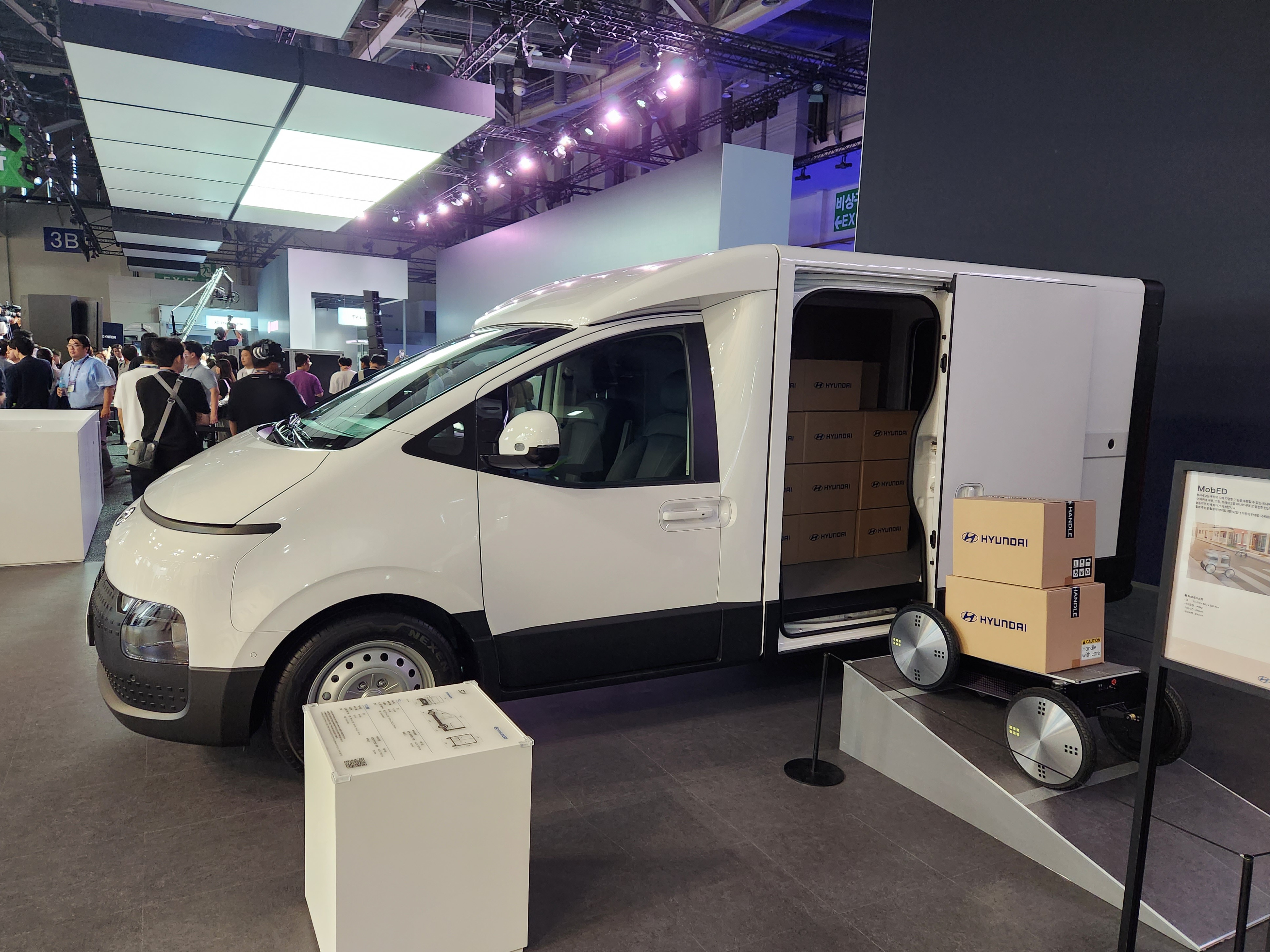 ST1과 함께 로보틱스 기술이 집약된 신개념 소형 모빌리티 플랫폼인 '모베드(MobED, Mobile Eccentric Droid)'도 전시됐다.