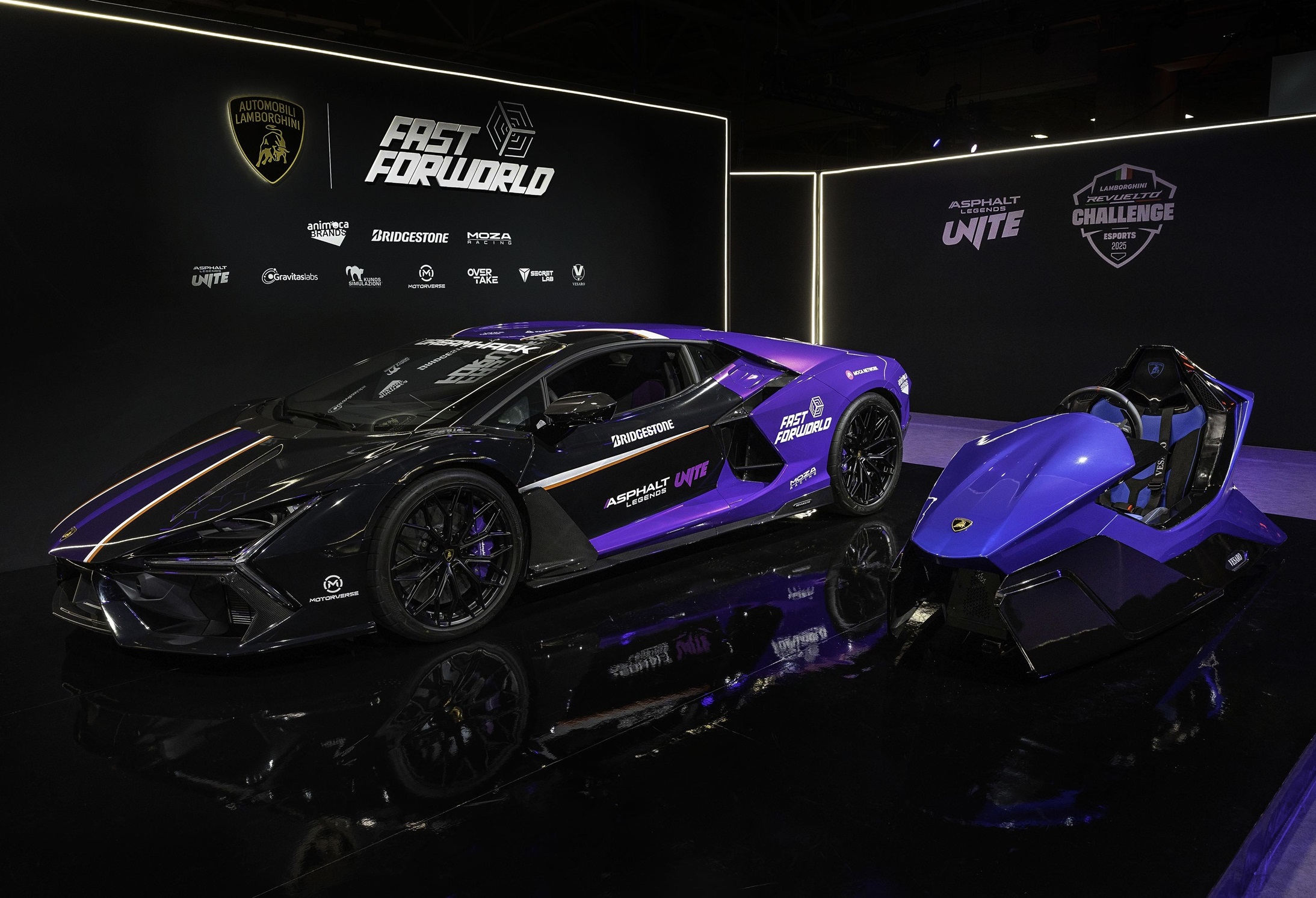 부스 중앙에는 특별한 리버리로 커스터마이징된 레부엘토가 전시되어 큰 주목을 받았다. 레부엘토는 람보르기니 최초의 고성능 전동화 차량(HPEV)이자 슈퍼 스포츠카의 새로운 패러다임을 제시한 모델이다. 람보르기니의 상징인 V12엔진과 3개의 전기모터가 결합되어 최대 1015마력(CV)의 폭발적인 성능을 발휘한다. 행사에 전시된 커스터마이징된 레부엘토는 게임 속에서도 동일한 모습으로 구현되어 가상과 현실의 경계를 허무는 상징적인 콘텐츠로 호평을 받았다.