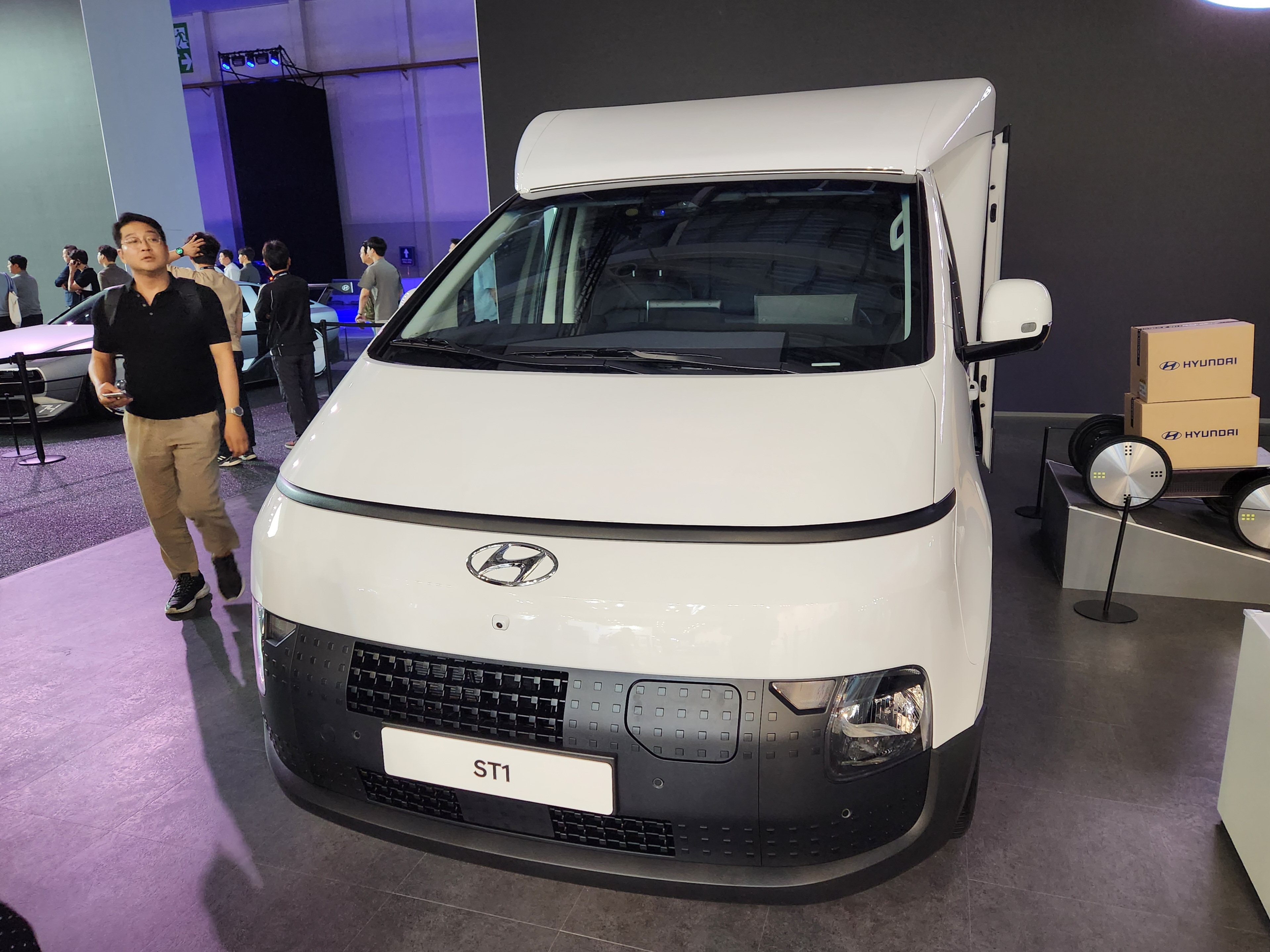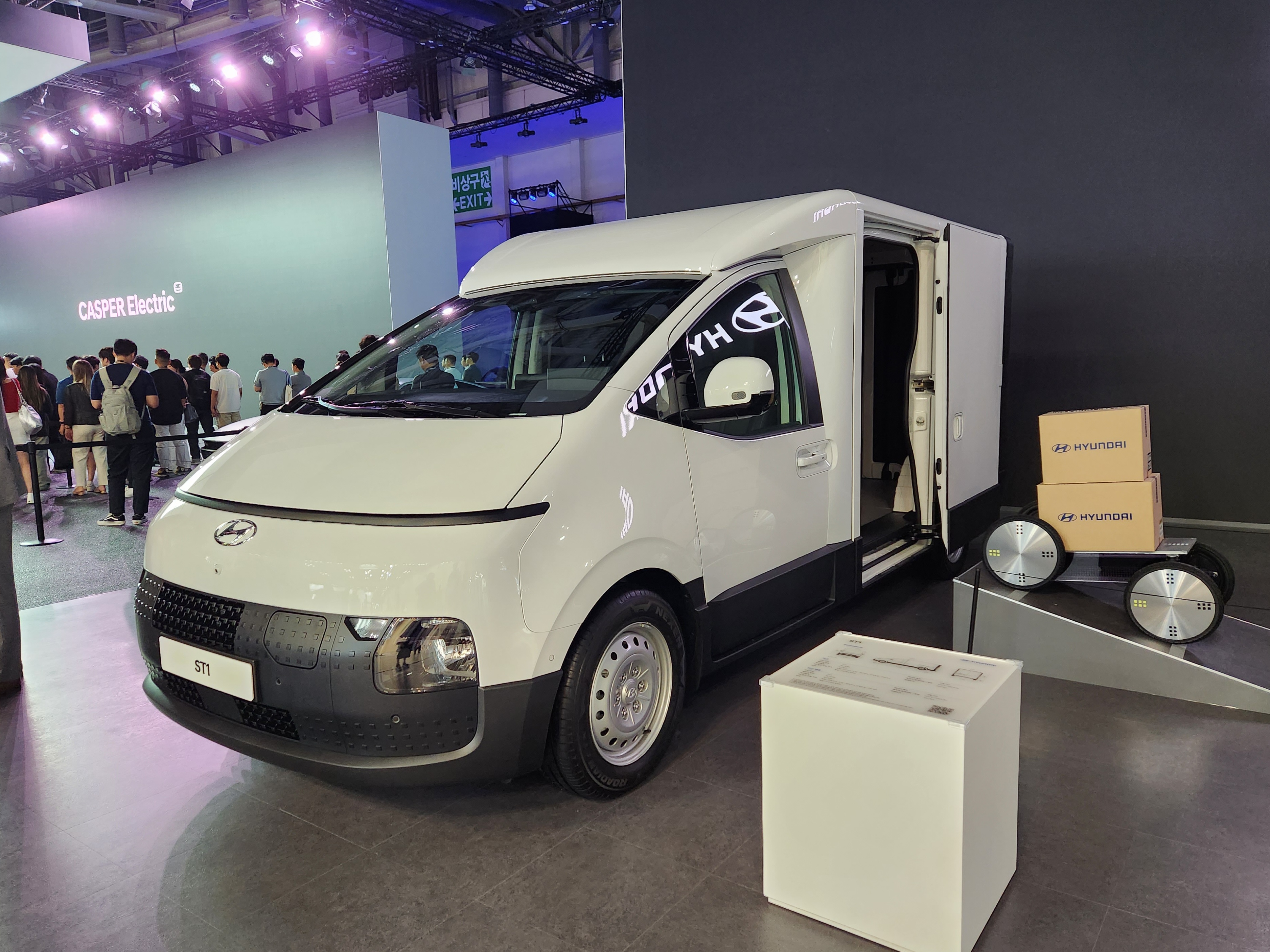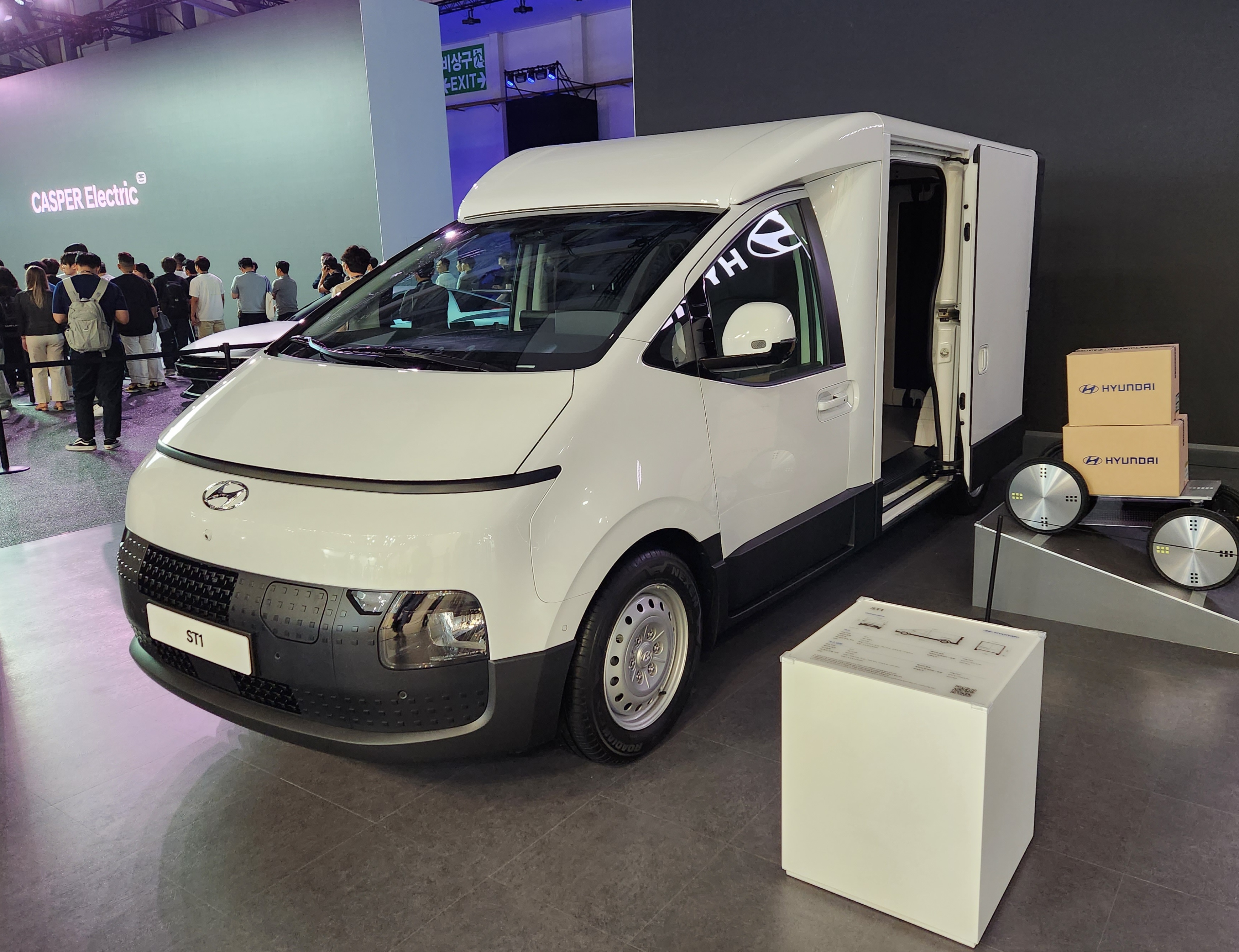 전시된 상용 모델 'ST1'은 샤시캡을 기반으로 사용 목적에 따라 최적화된 형태로 확장될 수 있는 비즈니스 플랫폼 차량이다. '샤시캡(Chassis-Cab)'은 샤시와 캡만으로 구성된 차량으로 캡 뒤쪽에 적재함이 없는 차량을 뜻한다.